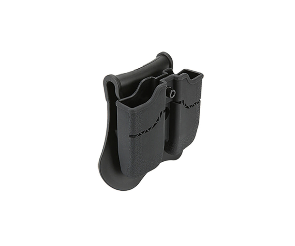 - Comfortable soft silicone paddle securely fits magazine pouch to a belt
