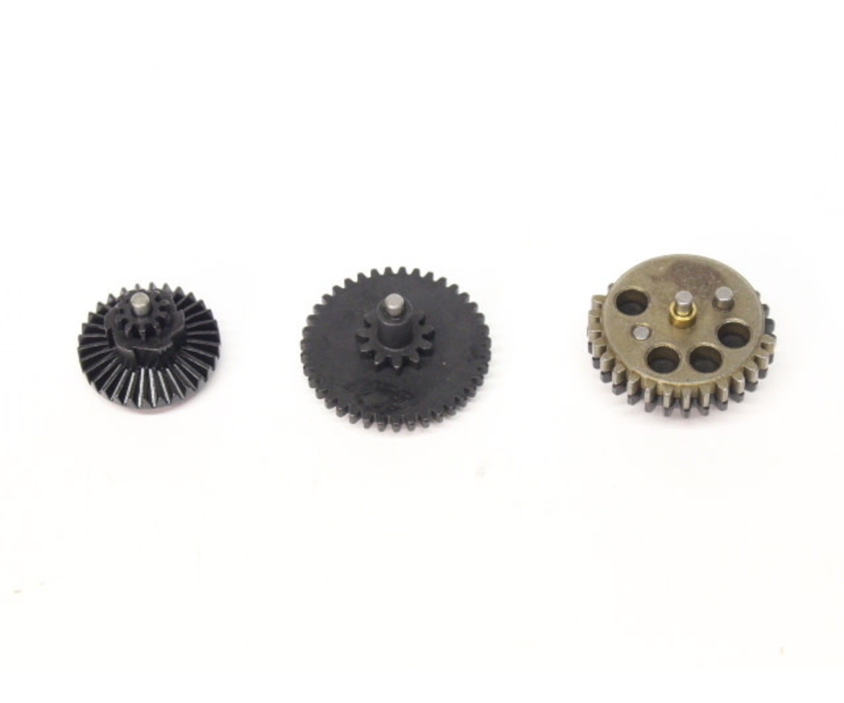 Building a high torque build and want the right gears for it? Need to pull a heavier spring in your AEG? Then you'll want the ZCI 32:1 3mm Steel CNC Gearset. These gears offer a 32:1 ratio, designed for higher torque builds. Plus, these gears are made from CNC steel, offering better durability from the wear and tear of your gearbox. Paired with a higher torque motor, you can easily pull M130 springs and more!