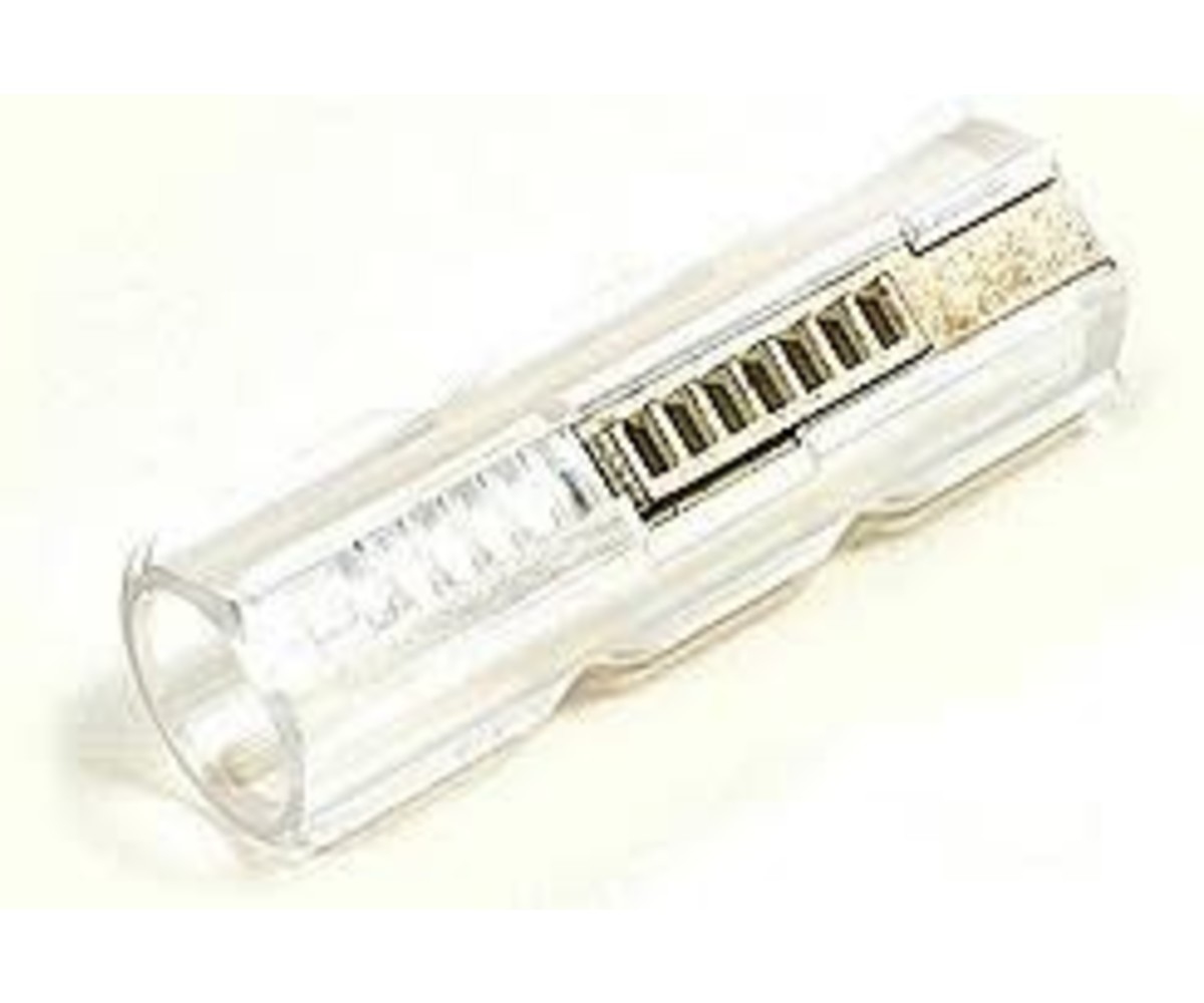 The Action Army High-Velocity PC Reinforced Piston with 10 Metal Teeth is the ultimate solution to a strong, lightweight piston for high velocity and high-speed AEGs. The polycarb body keeps the piston lightweight, which puts less strain on the gears.