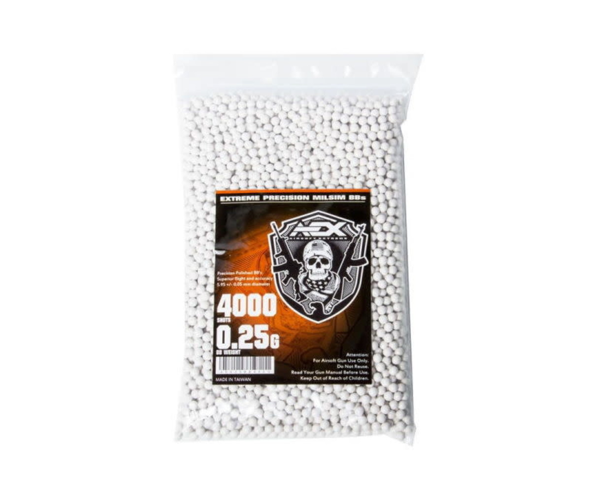 The 0.25g weight of BB is a very popular choice amongst airsoft players due to the addition of weight for stability but not so much that they lose distance or that the average gun has trouble applying hop-up. Perfect for any gun shooting 350 to 400 fps. The BBs are polished and have no seams to affect your trajectory also eliminating possible ways to jam your gun. The AEX 0.25g BBs are an affordable high-quality BB that players need to take advantage of!