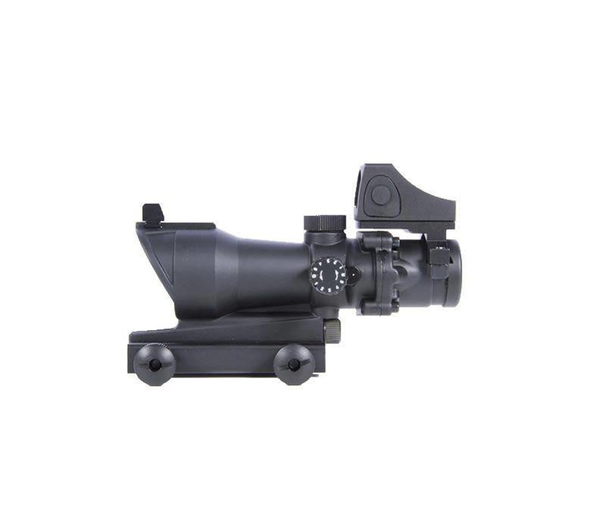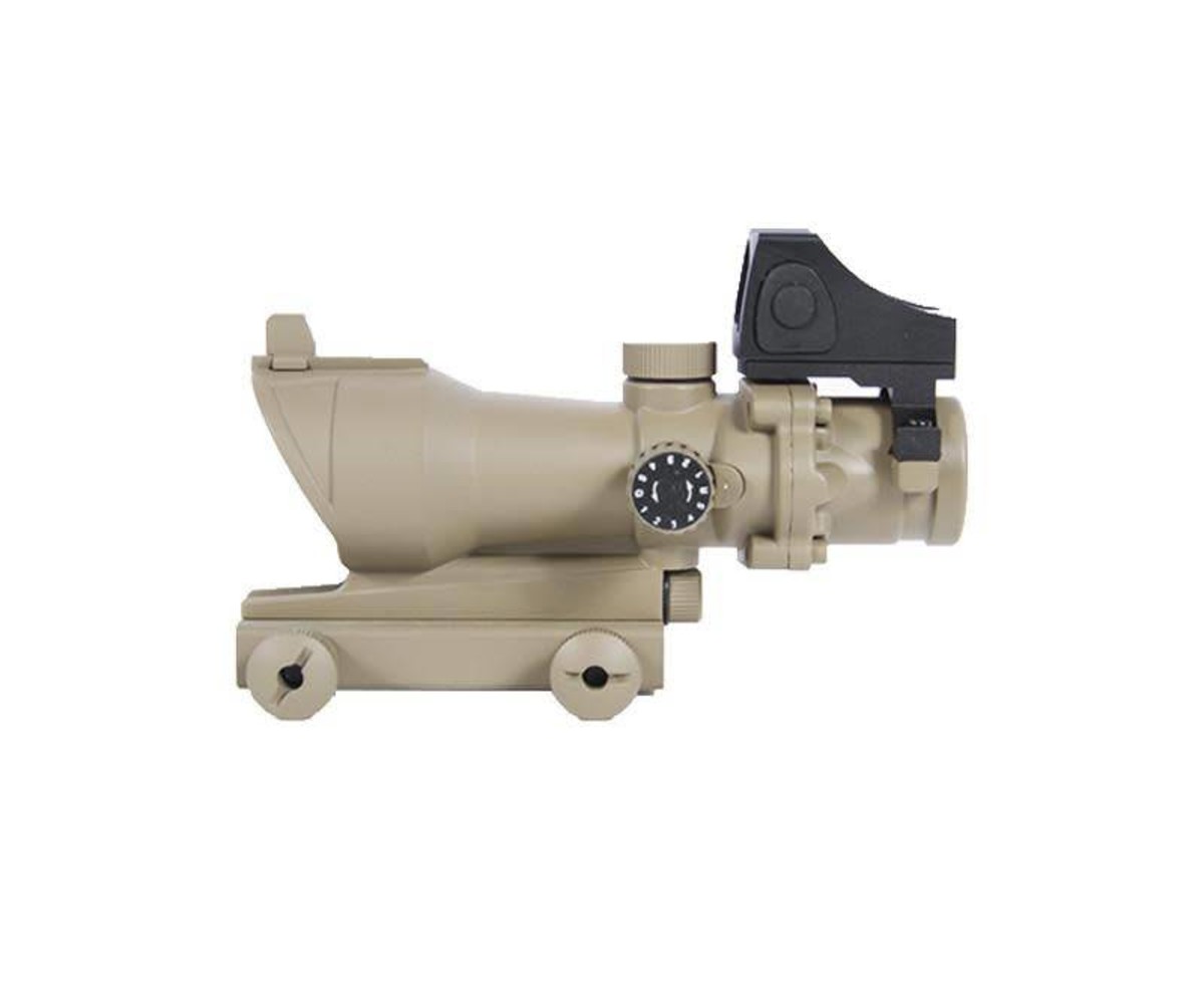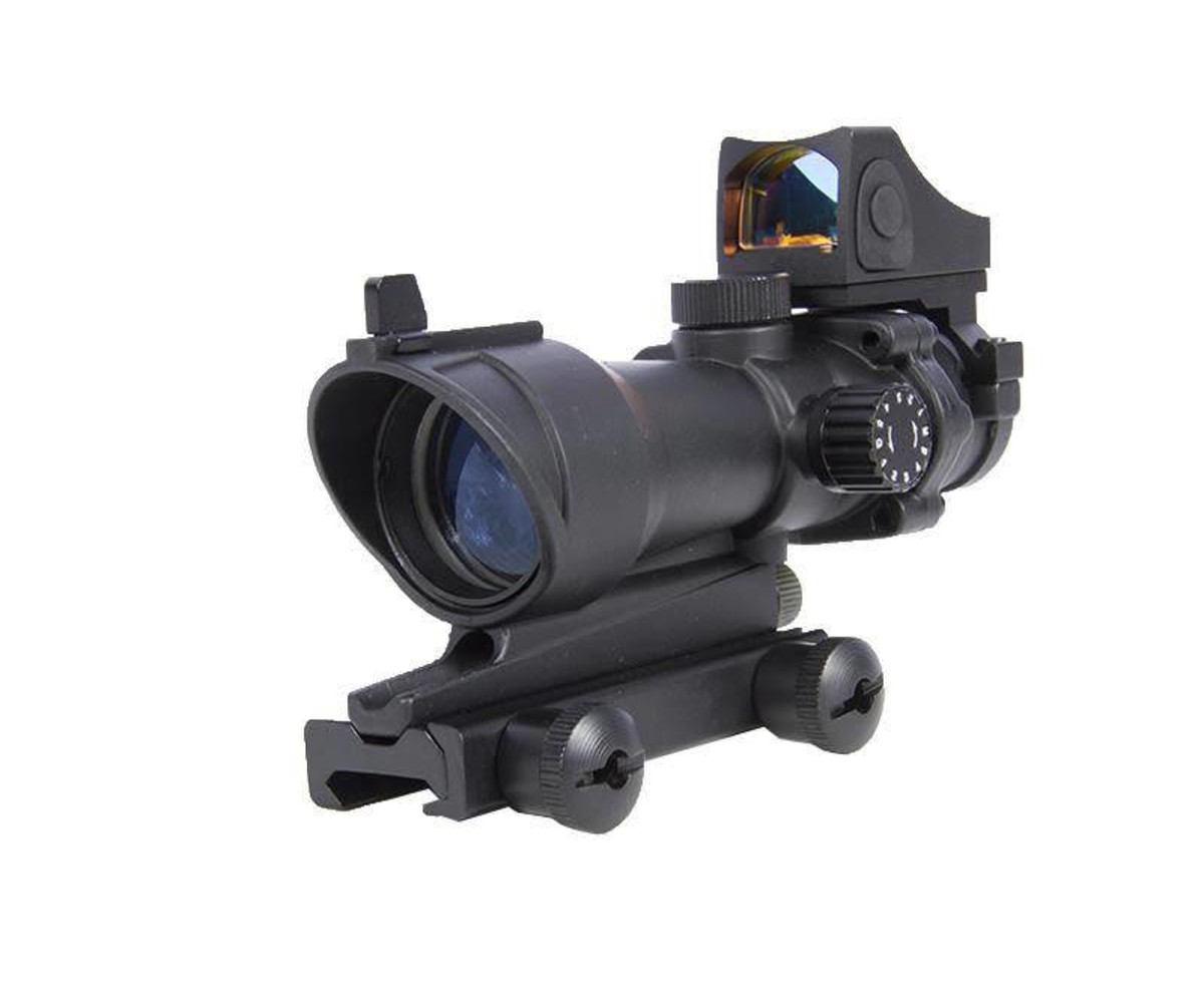 Extend your effective range or just complete the look of your replica with AEX’s ACOG style scope combo. Integrated red dot sight allows for better target acquisition and transition of sights when entering or leaving close quarters areas. Both sights are CNC metal constructed ensuring they’ll stand up over time. Both the scope and red dot are adjustable allowing you to sight them in with your preferred replica.
