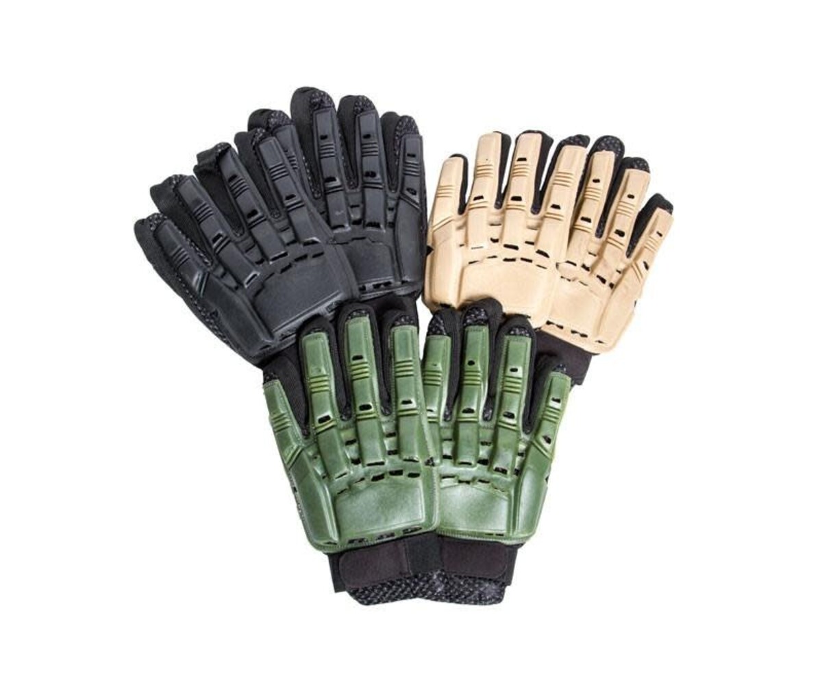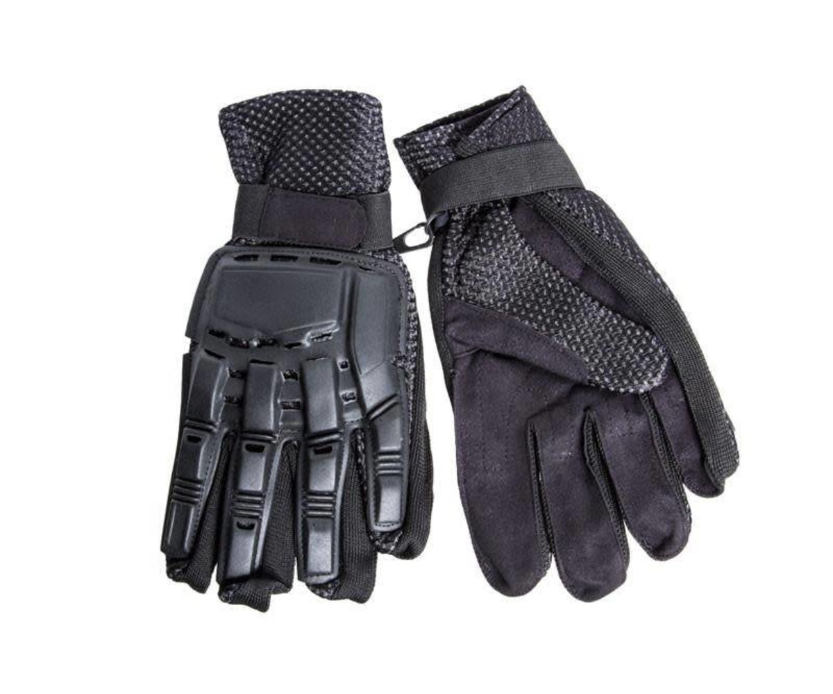 This heavy-duty paintball/airsoft glove features a plastic armor shell covering the back of the hand and fingers to eliminate those painful hand hits. Also great for motorbiking or mountain biking. Palm is made out of thick material for sensitivity, while fingers are padded cotton. Very comfortable fit and protection without sacrificing dexterity. A must-have for any wargamer or extreme sports enthusiast.