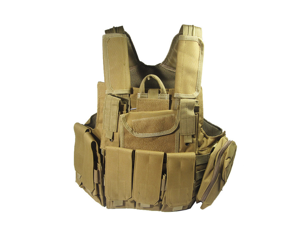Want to carry more than the bare essentials? Check out the AEX Assault Plate Carrier System. This rugged chest rig comes fully loaded with pouches to help you carry everything you need within arms reach. The included mock foam plates also help to reinforce your chest and back from any hits you take while under fire. Available in both Black and Tan.
