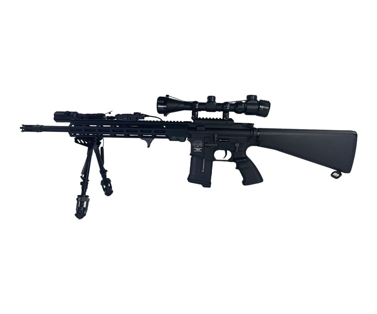 Introducing Artemis, a custom-built airsoft rifle designed to dominate long-range engagements with elegance, precision, and authority. Crafted with a sharp eye for performance and a balanced fusion of form and function, Artemis brings sniper-like precision to an SBR platform, redefining what it means to be a DMR-class hybrid on the field.