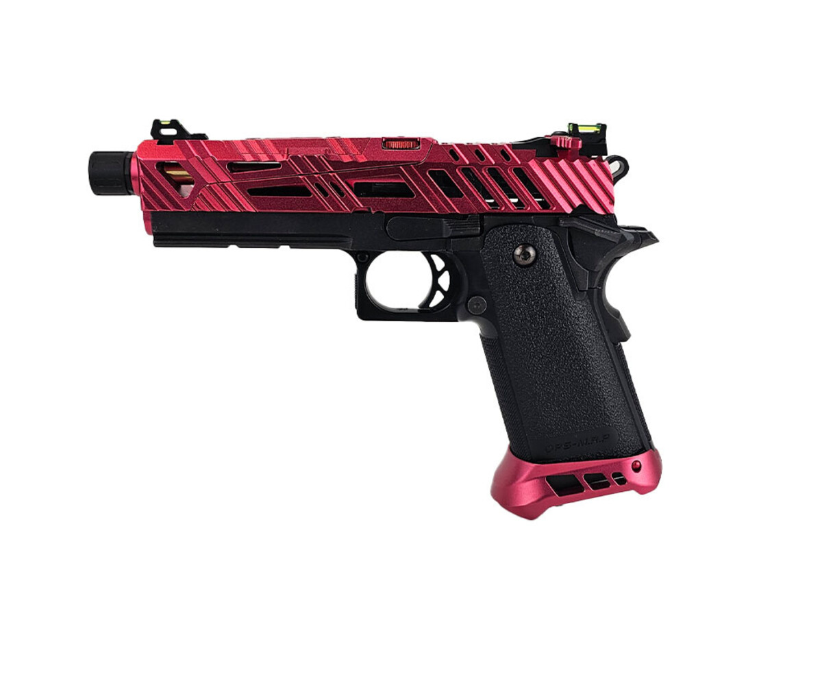 Competition-Grade Enhancements: The CowCow Competition Recoil Buffer and Guarder 150% recoil/hammer spring kit make this pistol punch harder and reset faster. A CTM TAC CNC magwell in pink helps you reload with lightning precision, while lightweight Guarder mag base upgrades keep the form tight and functional.