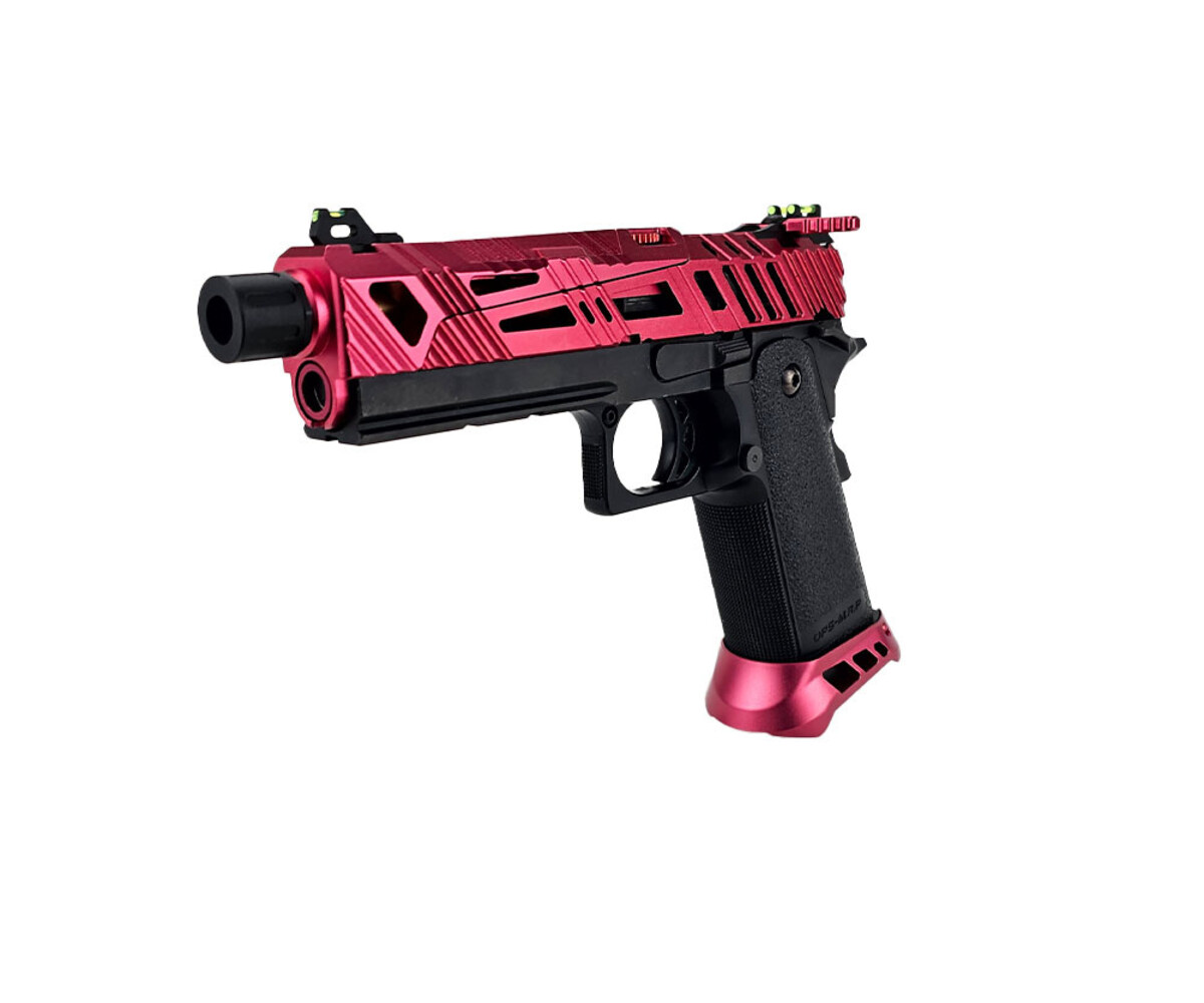 Explosive performance. Sweet style. Say hello to the CHERRY BOMB—a fierce and compact Tokyo Marui Hi Capa 4.3 build that merges high-speed competitive functionality with head-turning aesthetics. This AEX Custom pistol is built for fast-paced CQB domination or tuned-up tournament performance, with upgraded components to keep your shots crisp, clean, and reliable under pressure.