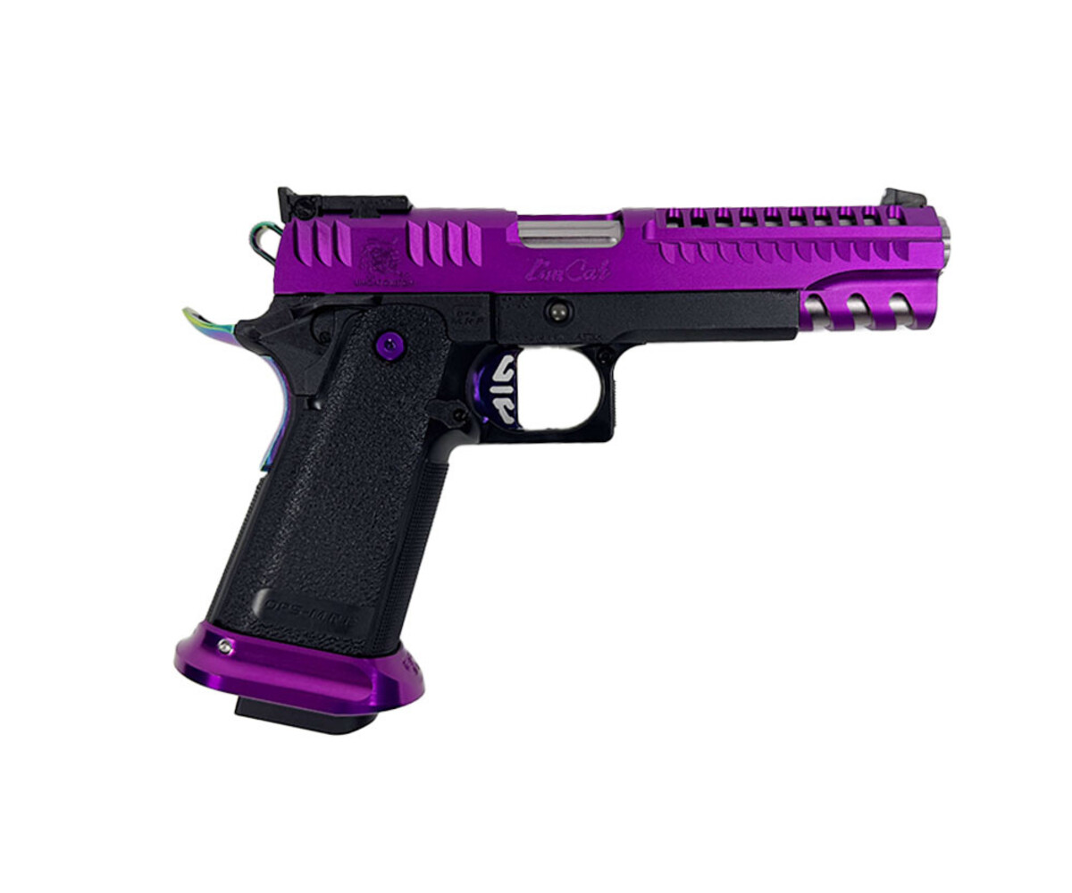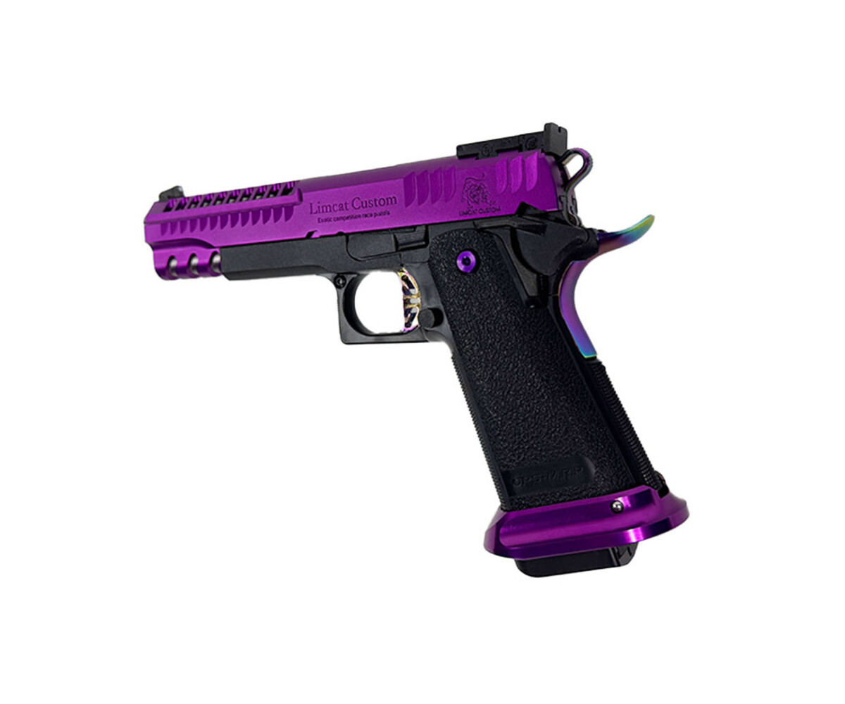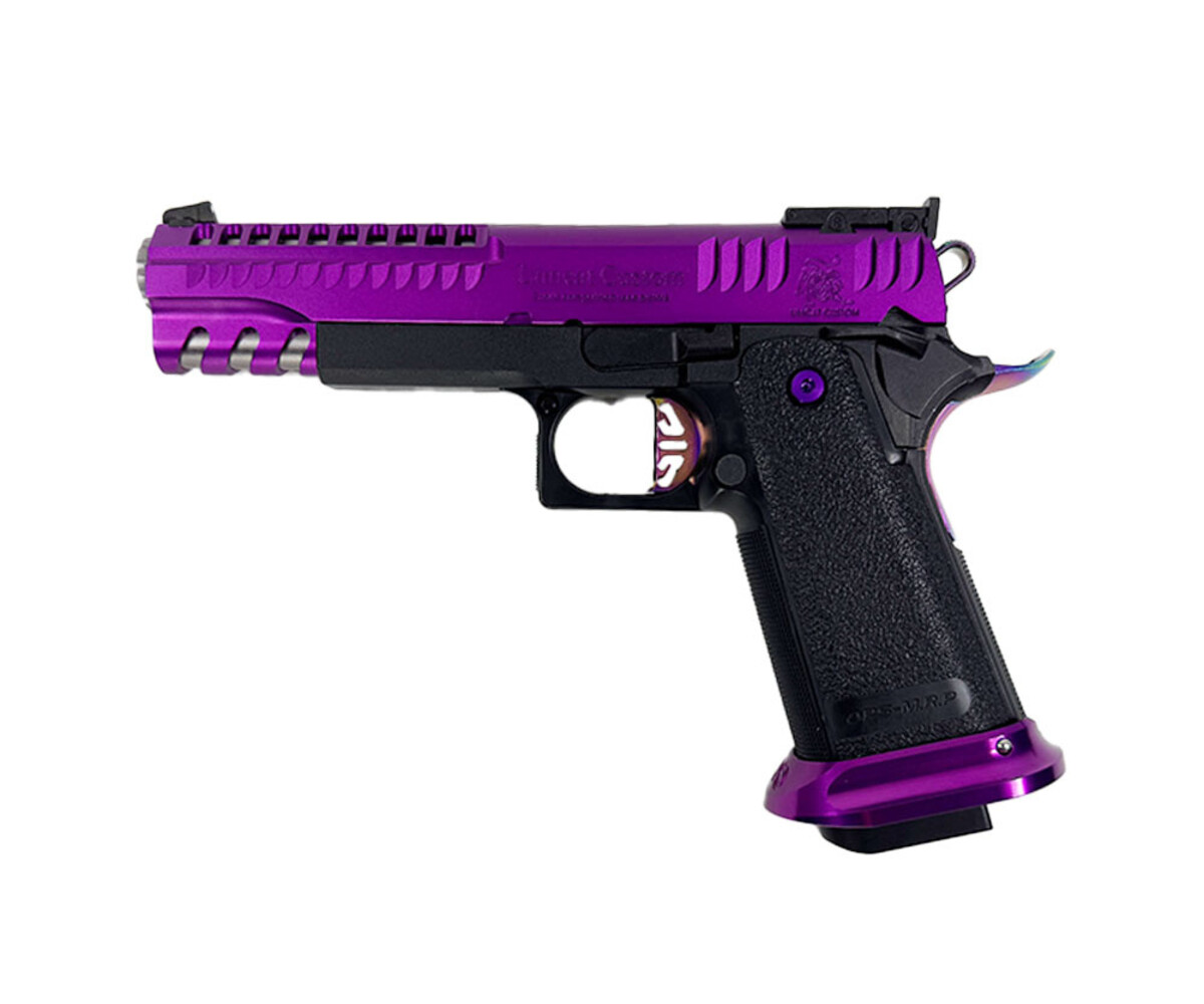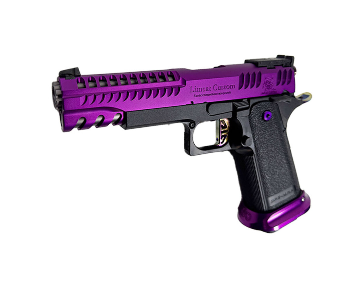The AEX Custom "Dream Scape" Tokyo Marui Hi Capa 5.1 is an subtle design but competition-ready pistol with a striking purple, and black finish. Designed for speed, accuracy, and superior handling, this build features a Airsoft Masterpiece Limcat WILDCAT.