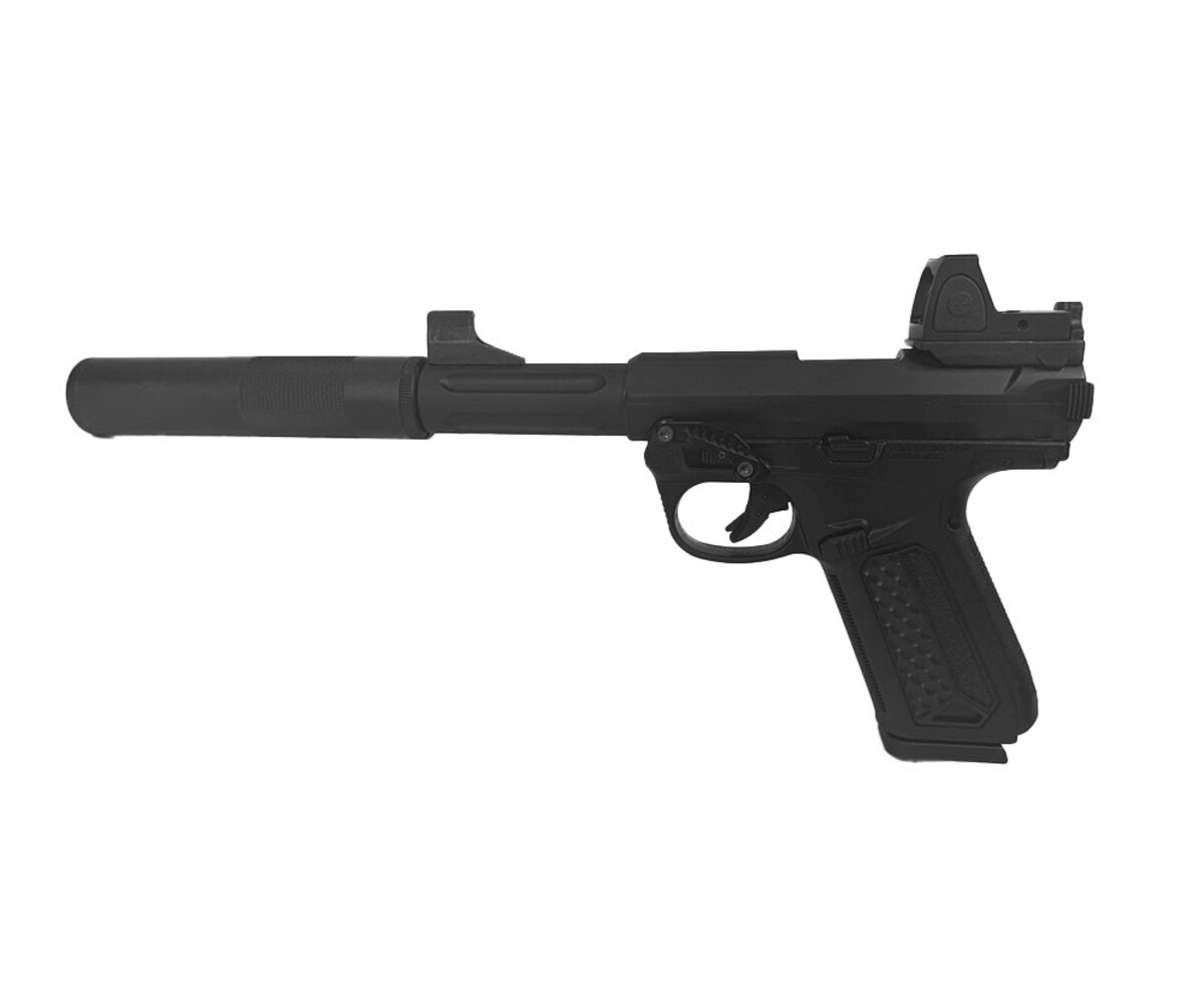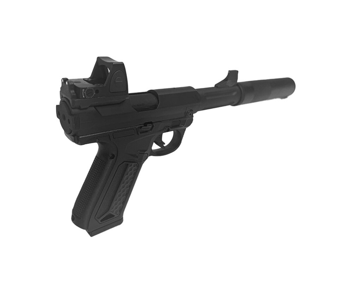With its extended precision barrel housed within the sleek Maple Leaf mock suppressor, the OH SILENT KNIGHT is built for accuracy and control without sacrificing speed. Whether you’re snapping off shots in semi or unleashing a flurry in full-auto, this pistol ensures you stay on target and in control.