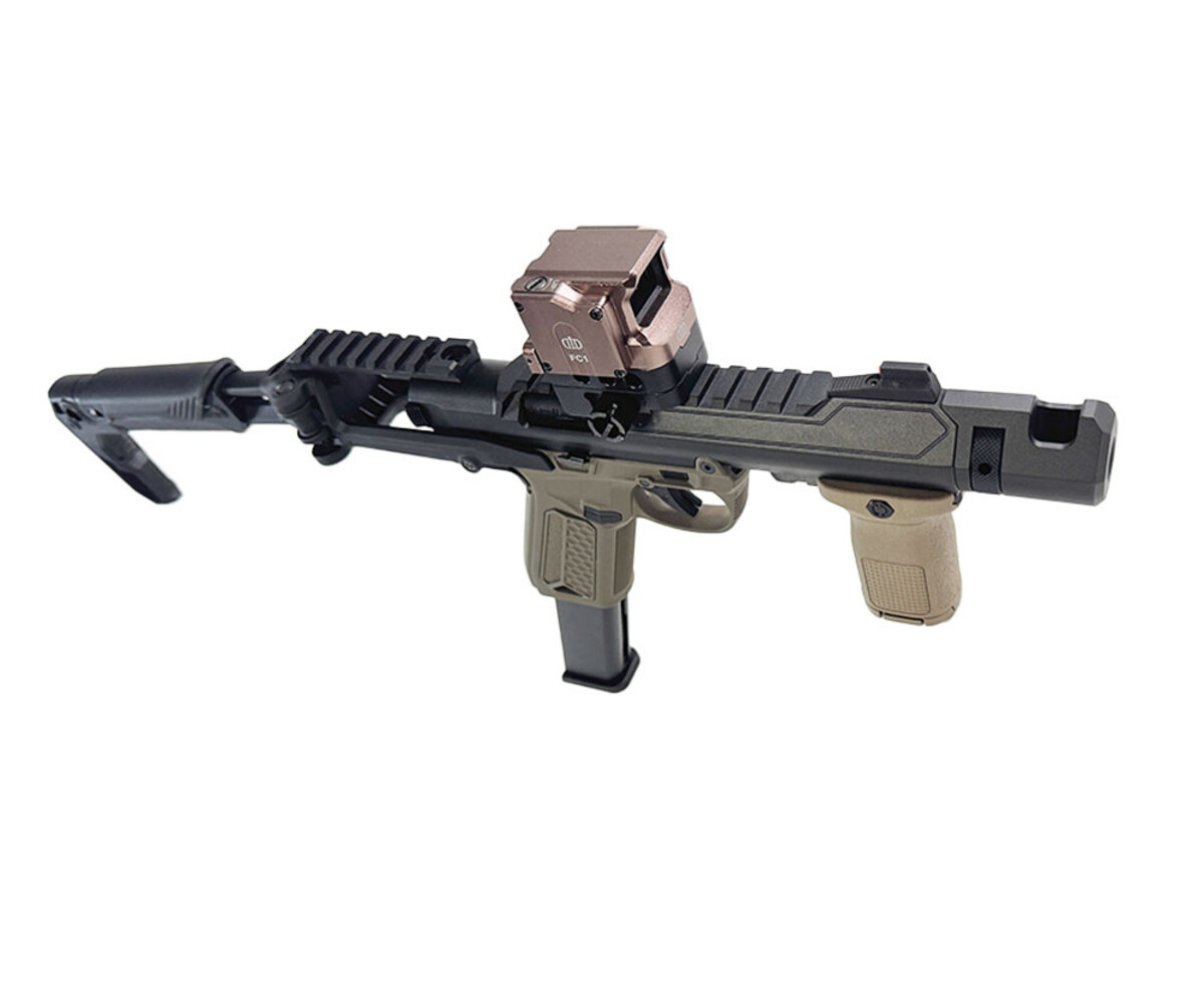 AEX FC1 Stack 2 MOA Red Dot Sight (Tan): Equip your AAP-01 with this ultra-compact, high-performance 2 MOA red dot sight for rapid target acquisition. The tan finish seamlessly complements the FDE body of the pistol, giving it a professional, tactical look.