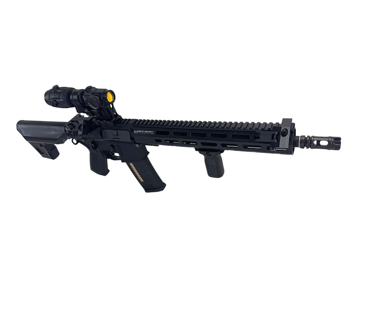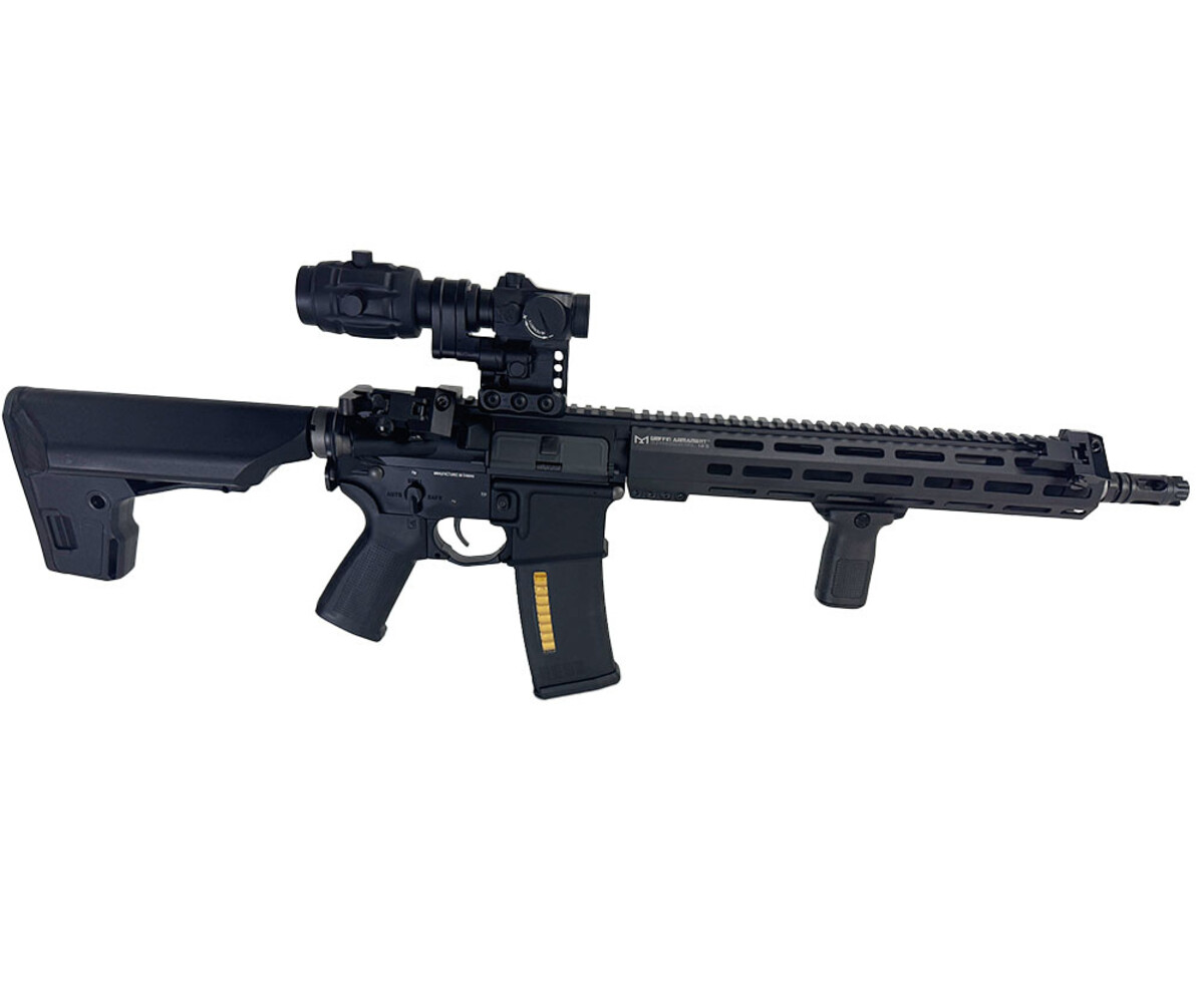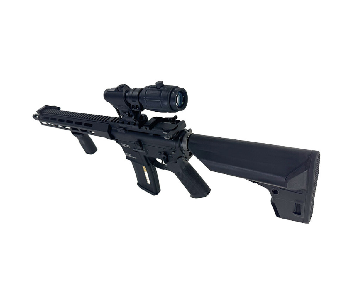 THE DEFENDER comes equipped with a APT2 Micro Dot Sight with Integral High Mount and a Hi-Rise Scope Mount w/ Flip-to-Side Magnifier Mount for variable-range targeting. Whether you’re clearing buildings or covering teammates from distance, your visual clarity stays mission-ready.