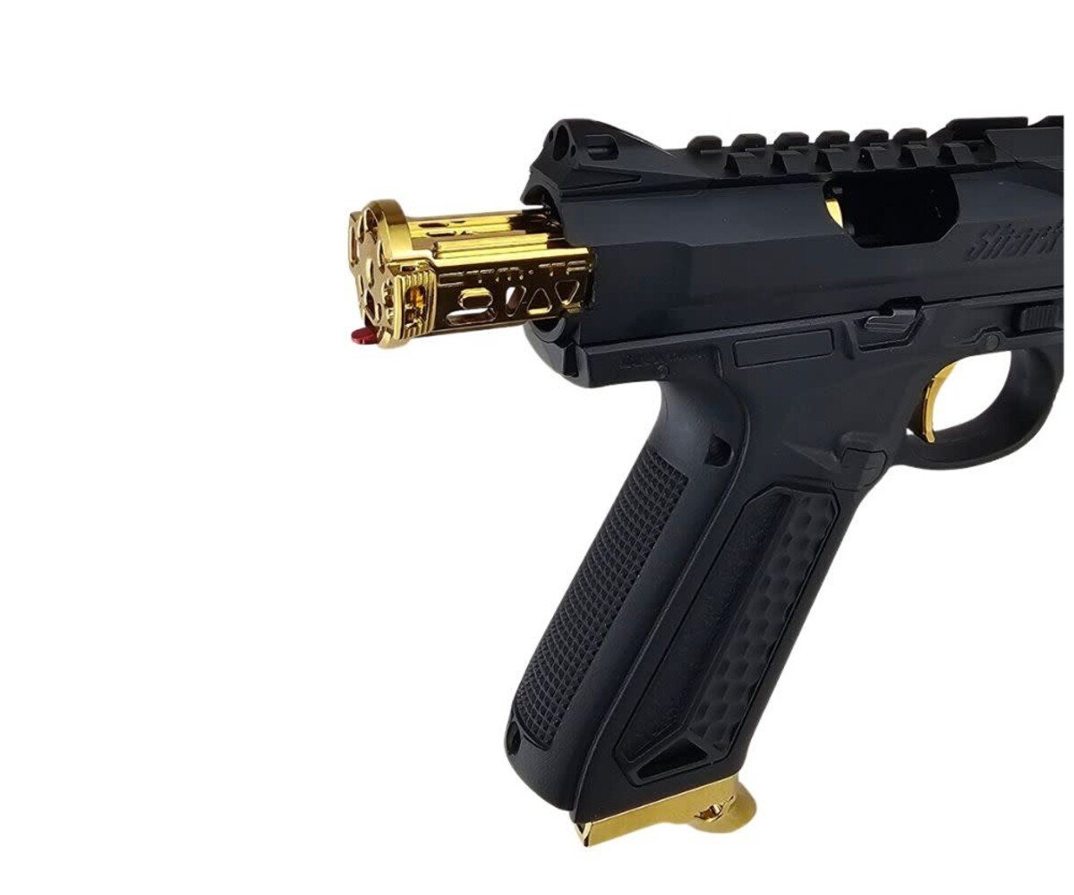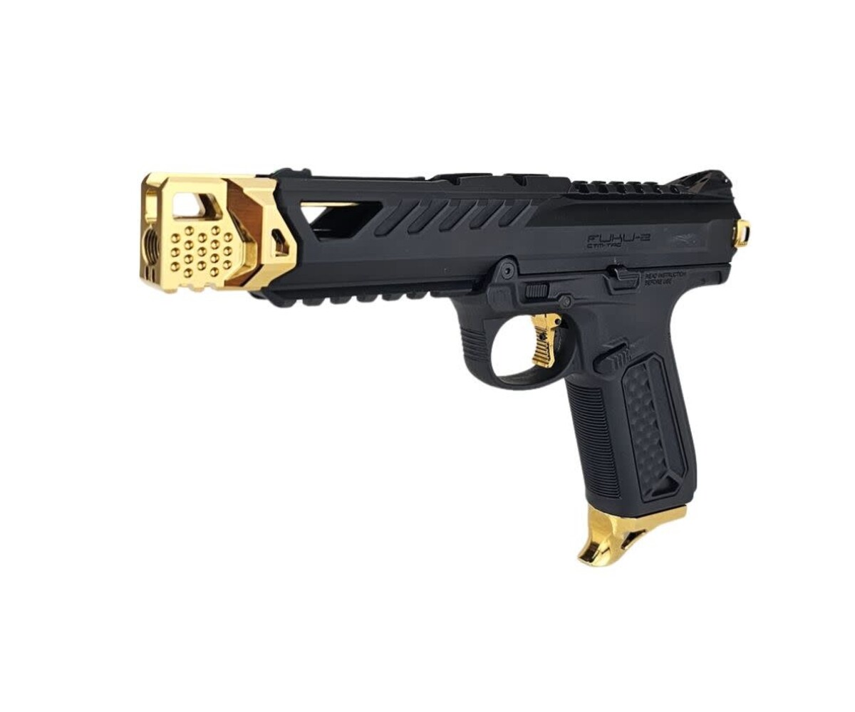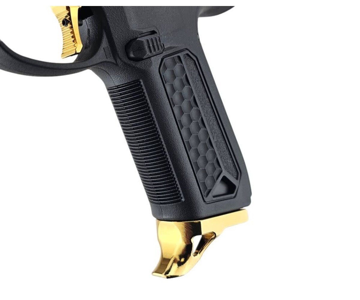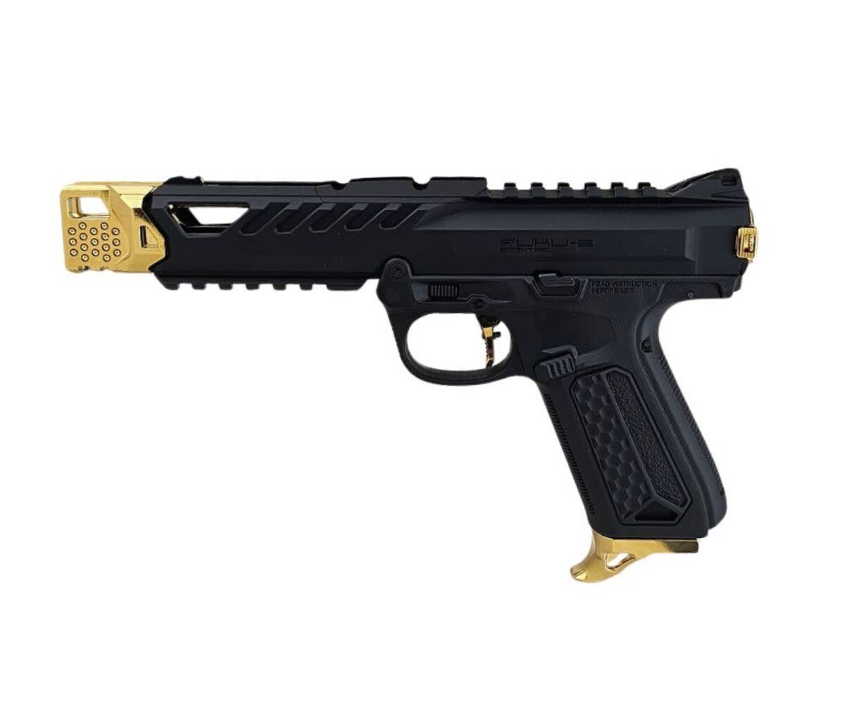 The AEX Custom “UMBREON” is a sleek, high-speed AAP-01 build with a bold black and gold finish inspired by clean competition styling and aggressive field performance. Built on the Action Army AAP-01 Assassin platform, this custom pistol keeps the lightweight, snappy, semi/full-auto capability players love while upgrading the overall look, handling, and response.