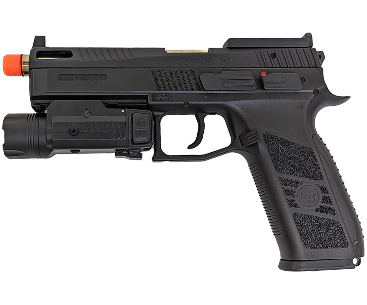 - ambidextrous push button light and laser switches.