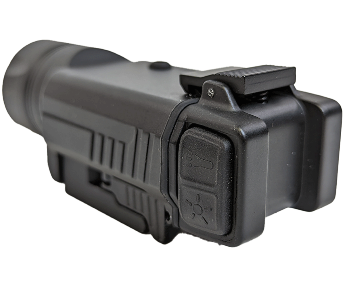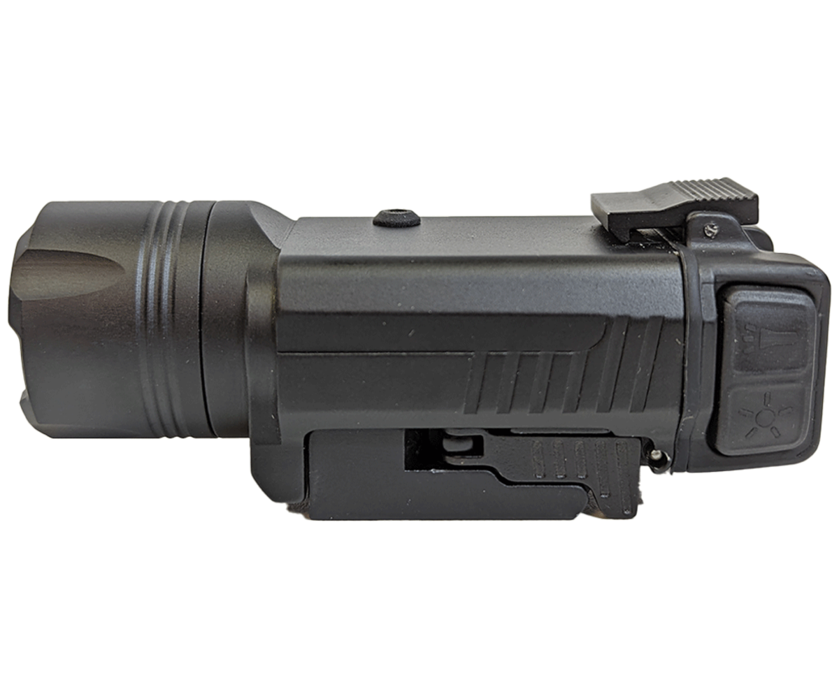 The controls are ambidextrous and feature two rubberized push buttons on each side of the light body: one for the light and one for the laser. Double tapping the light button activates the strobe function. This allows convenient access on most full-size semi auto pistols with accessory rails as well as rifles with picatinny/weaver rails.