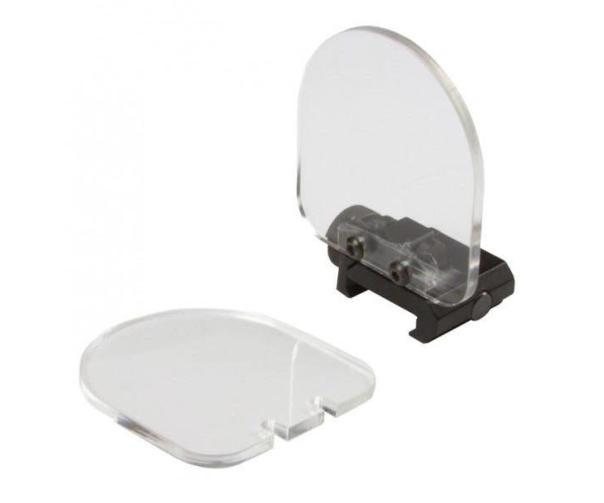 The Aim Sports Clear Lens Protector mounts onto any standard 20mm rail. And flips down when not in use. It is designed to deflect oncoming BBs away from your optic. BB wars can get pretty intense at times, give yourself peace of mind knowing your optic is protected.