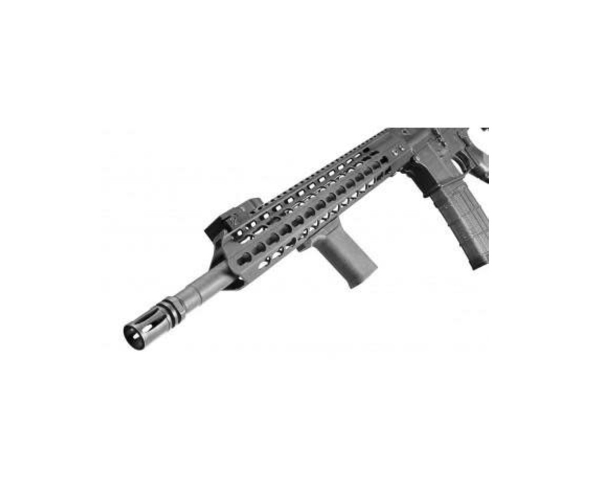 Minimalist profile for use as either a forward grip or hand stop. Designed for a comfortable wrist angle when utilizing a thumb over bore shooting stance.