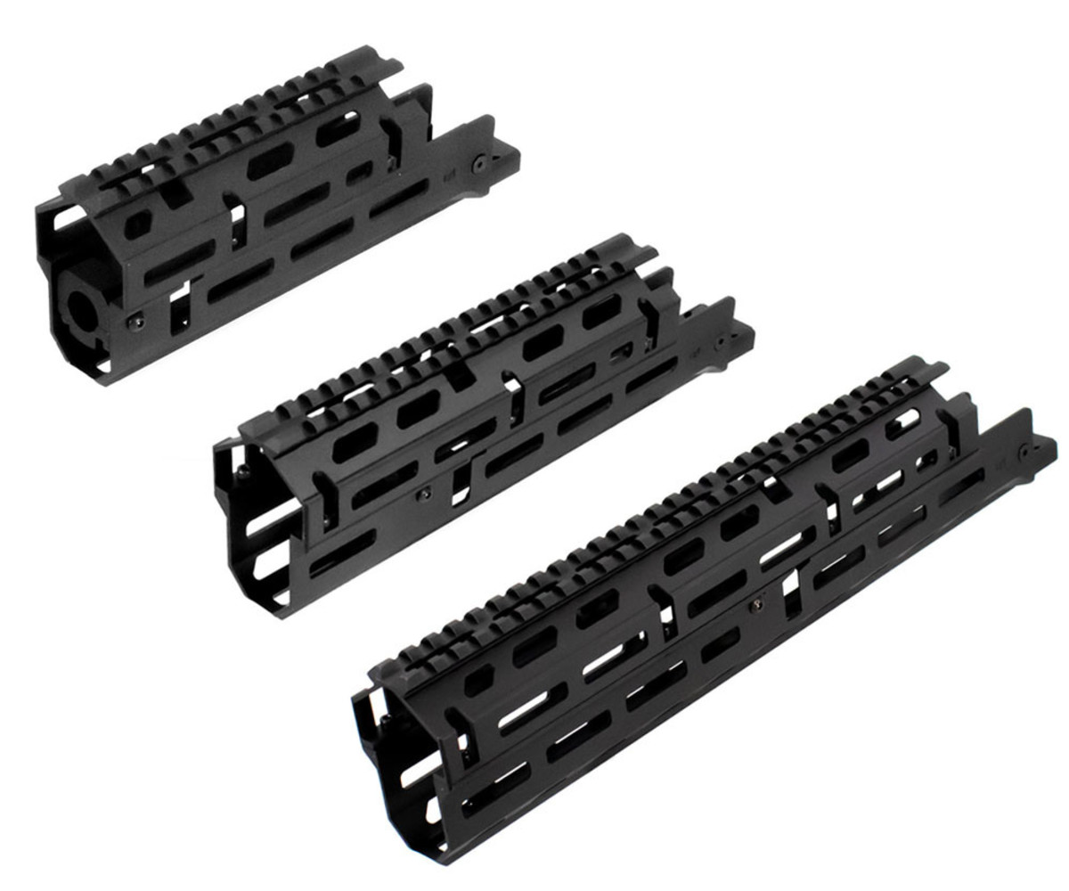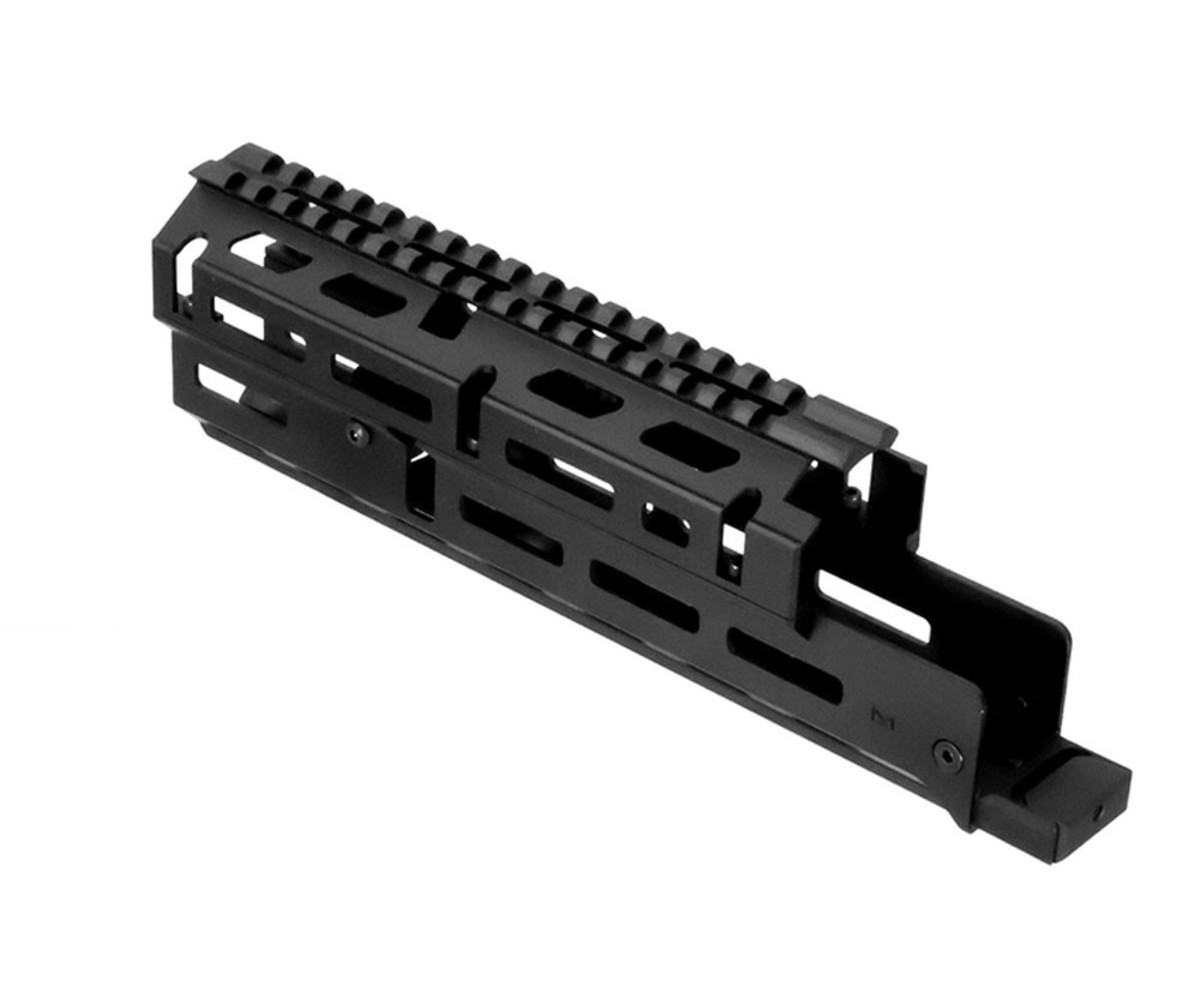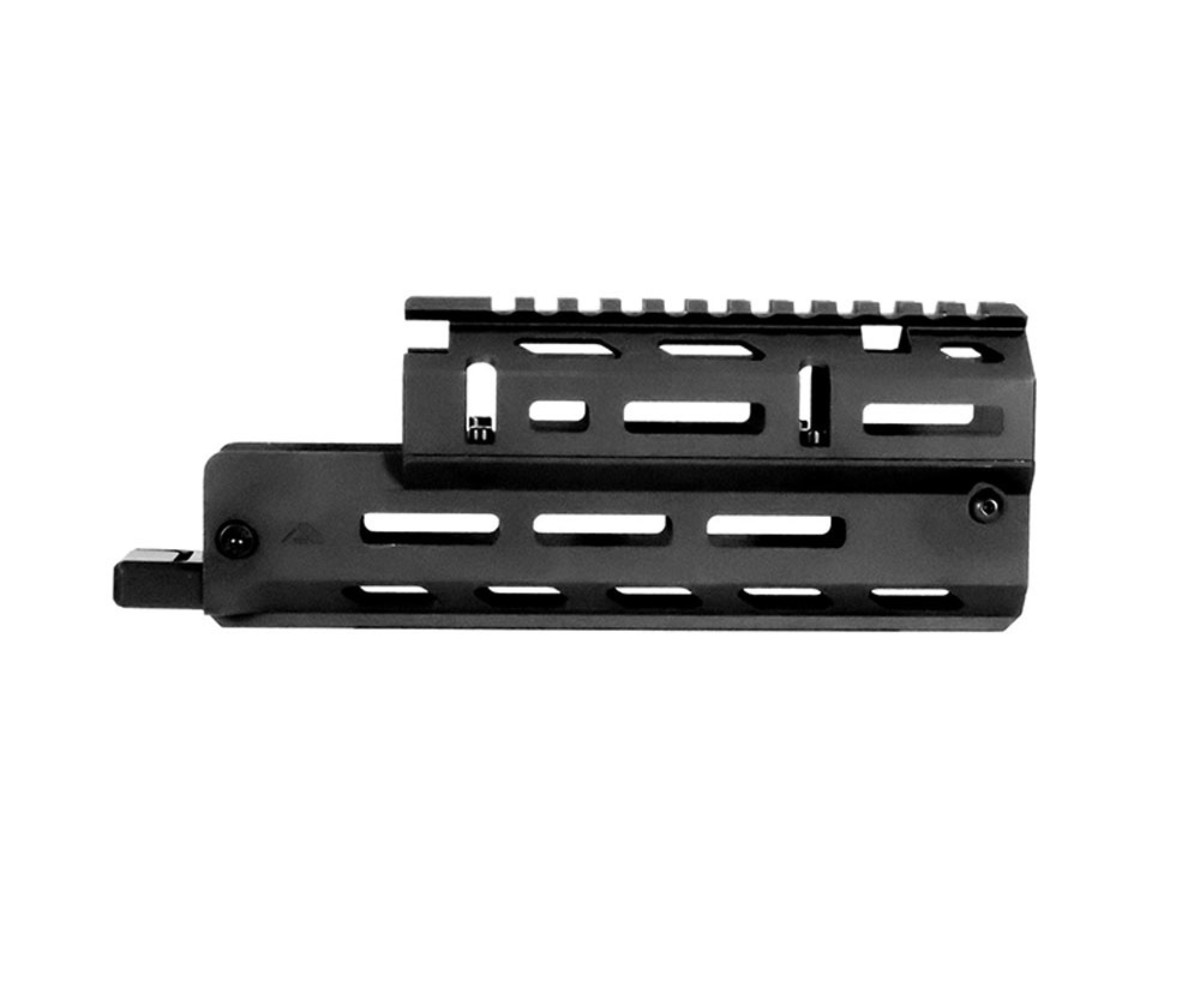 Russian AK-47 M-LOK® handguard is a 2-Piece drop-in style design. Machined from 6061 aluminum and anodized for hard use. Featuring a Picatinny 1913 top rail with a grenade sight cut out. Mounts with unique barrel clamps and receiver clamps while featuring 5 M-LOK® panels for ultimate modularity. No gunsmithing is required for installation.