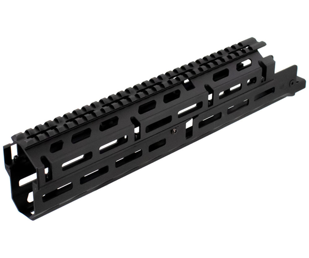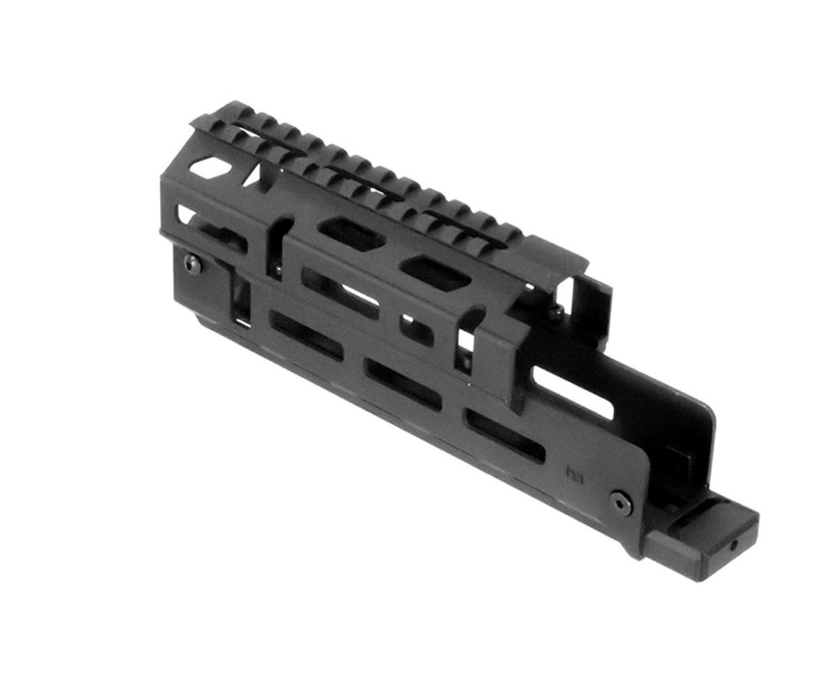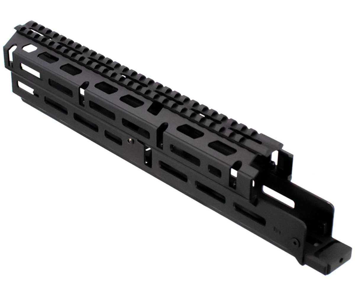 Russian AK-47 M-LOK® handguard is a 2-Piece drop-in style design. Machined from 6061 aluminum and anodized for hard use. Featuring a Picatinny 1913 top rail with a grenade sight cut out. Mounts with unique barrel clamps and receiver clamps while featuring 5 M-LOK® panels for ultimate modularity. No gunsmithing is required for installation.