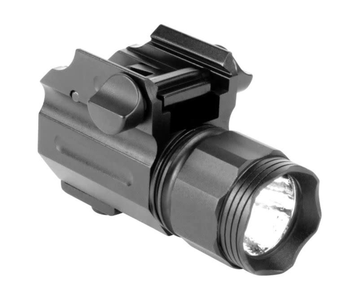 The 330 Lumens sub-compact flashlight fits most pistol frames and rifles with Picatinny rail systems. Features include push button on/off switch and quick release attachment.