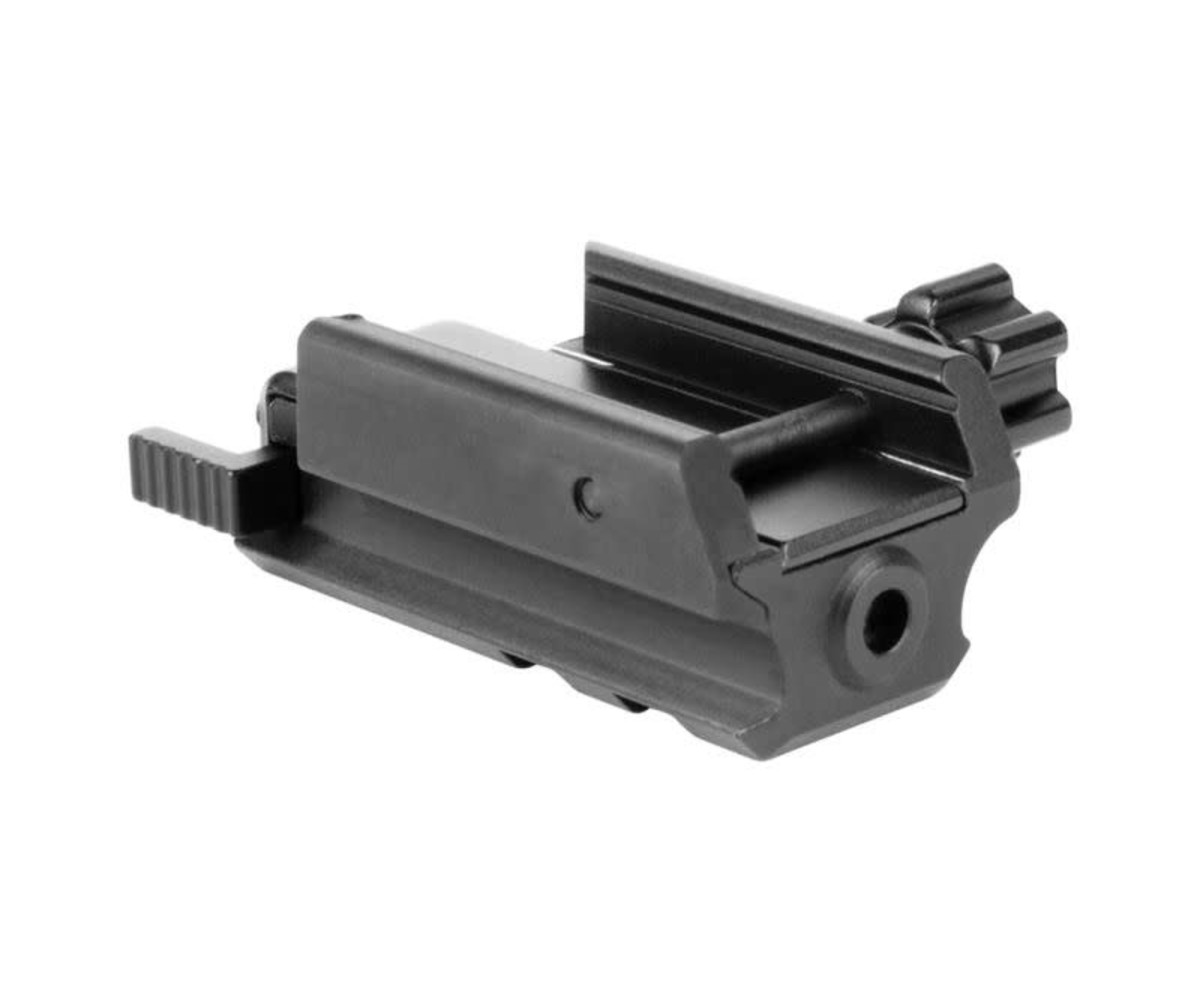 The green pistol laser sight is a low profile compact design. It adapts to both compact and full sized pistols. A bottom side Picatinny rail allows the user to mount compact flashlights or other accessories as desired.