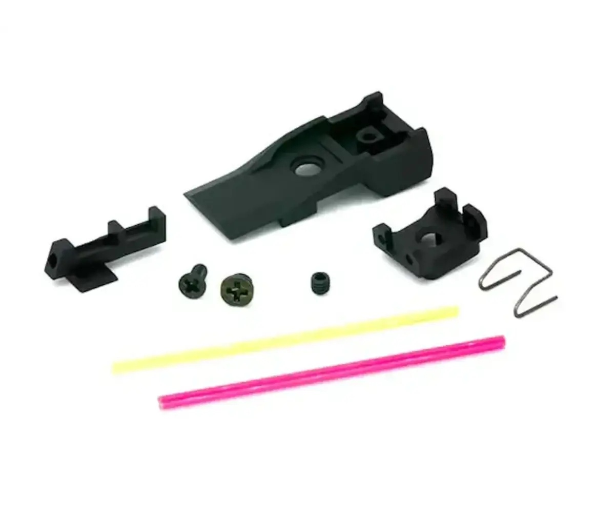 Package Includes: Front sight, rear sight, mounting screws/retention parts, 1.5 mm red fiber rod, 1.5 mm yellow fiber rod