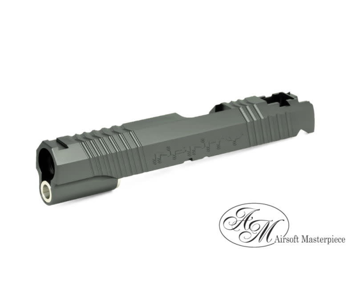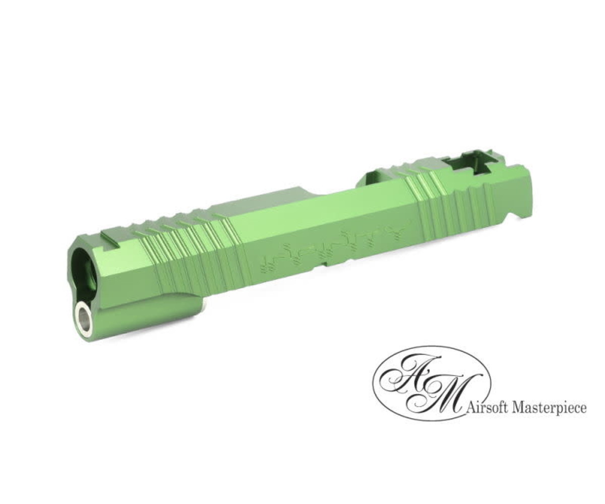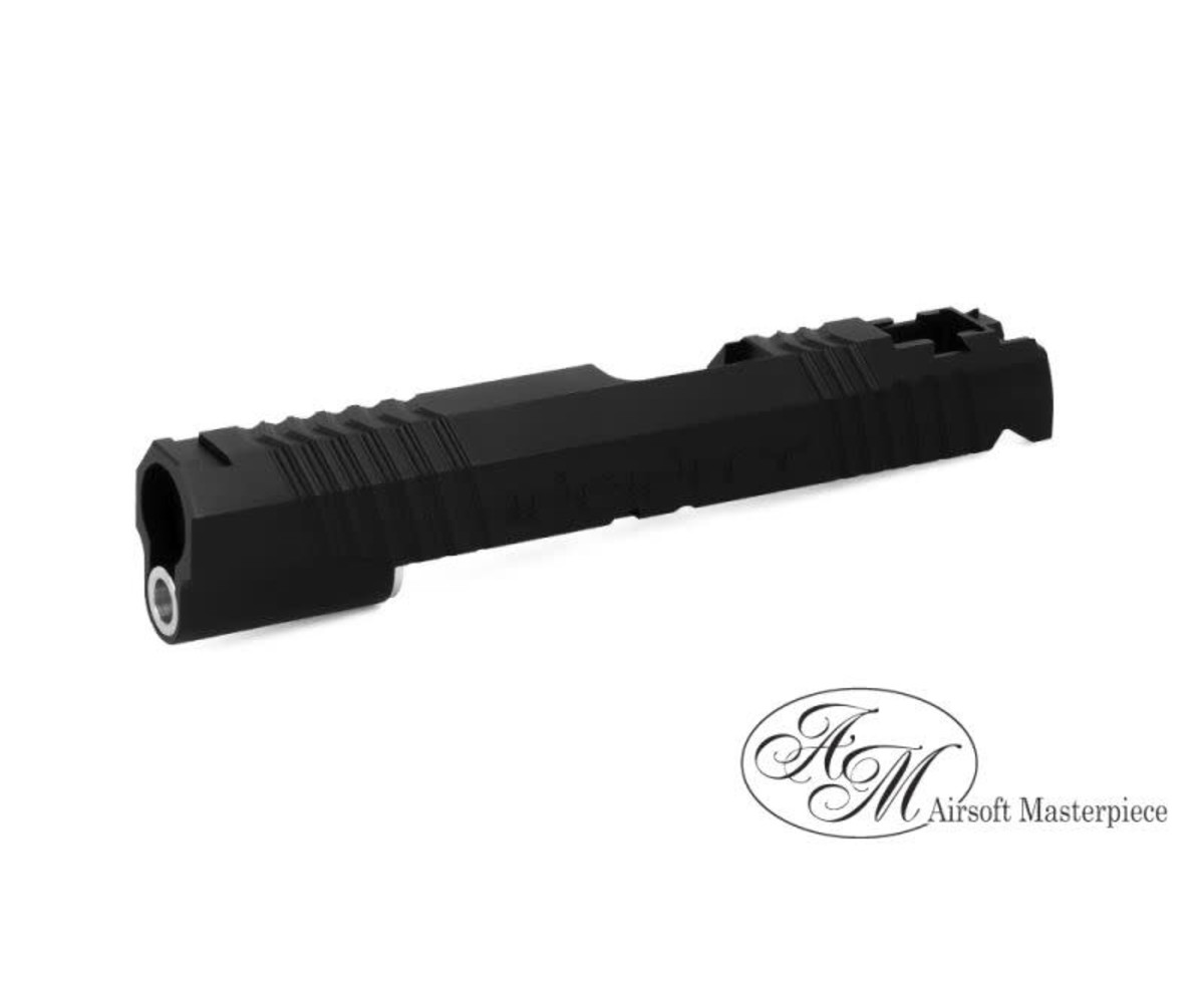 Airsoft Masterpiece has been providing high-quality parts and accessories for airsoft pistols, specifically the Hi Capa/ 1911 line of handguns, from slides, blowback housings, and other attachments. Airsoft Masterpiece slides are made of strong CNC Aluminum keeping it featherweight yet strong reassuring the player that their handgun can take a beating. The Airsoft Masterpiece slide makes installing parts a breeze since most of the parts are dropped into the slide; some installation of aftermarket products might take some fitting so be sure to contact your local AEX gunsmith for advice. The Airsoft Masterpiece line of slides is an essential part of a high-quality Hi Capa/1911 build by offering gas efficiency from its lightweight construction to reinforcing the gun with its metal design.
