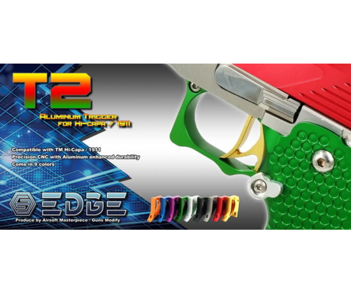 Upgrade your Hi-CAPA or 1911 pistol with the Airsoft Masterpiece EDGE Aluminum "T2" Trigger. Designed in collaboration with Airsoft Masterpiece and Guns Modify, this trigger is a perfect match for TM/AM/EDGE Hi-CAPA grips, providing enhanced durability and a superior trigger feeling.