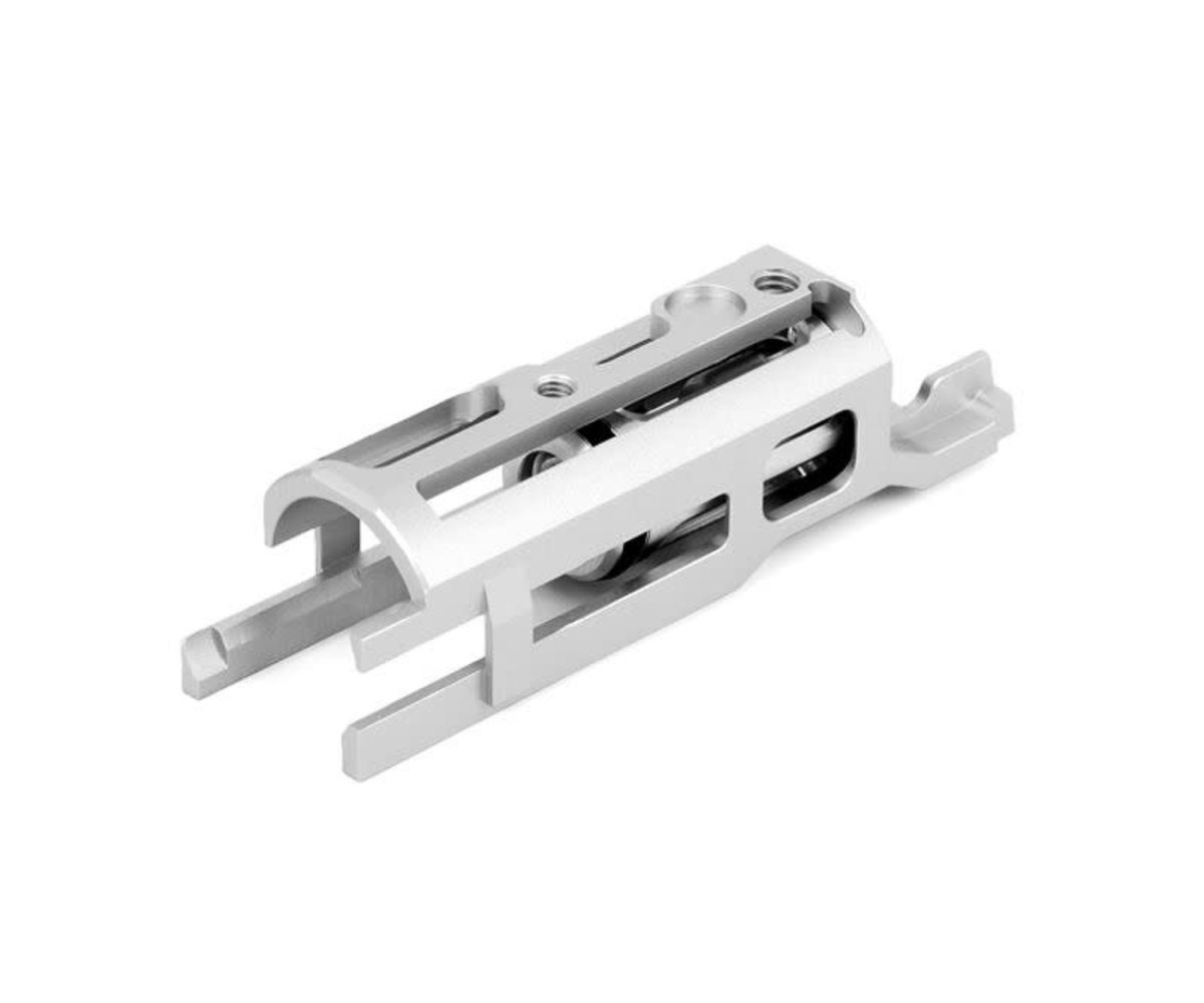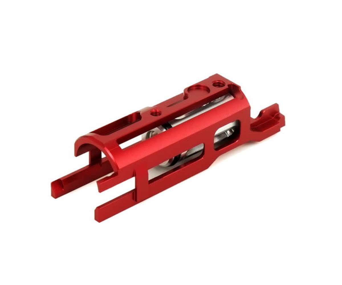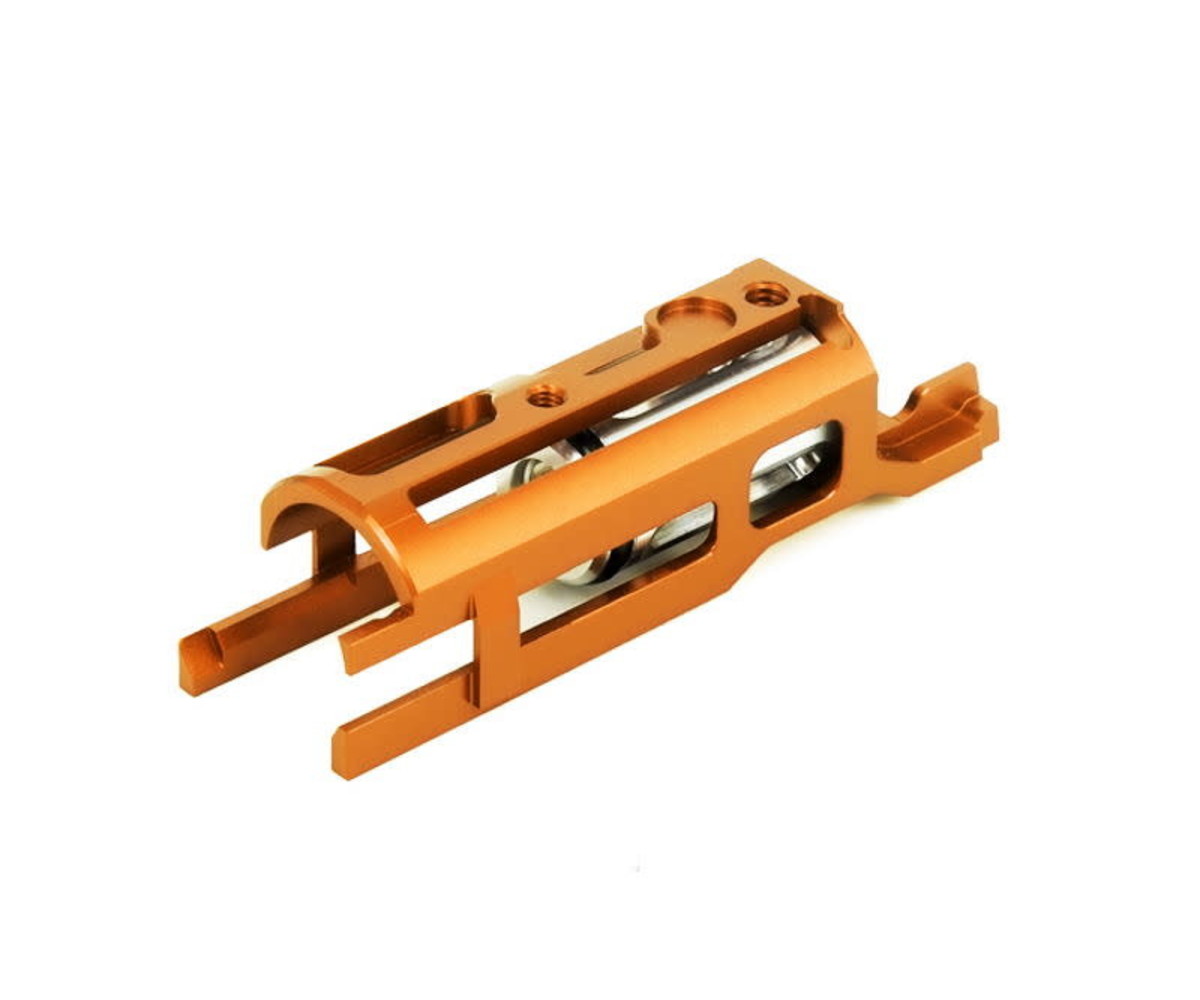 The low mass version adds additional lightening cuts to the housing in order to maximize weight reduction. This is ideal for those seeking maximum weight reduction and slide cycling speed, especially in short-stroke builds.