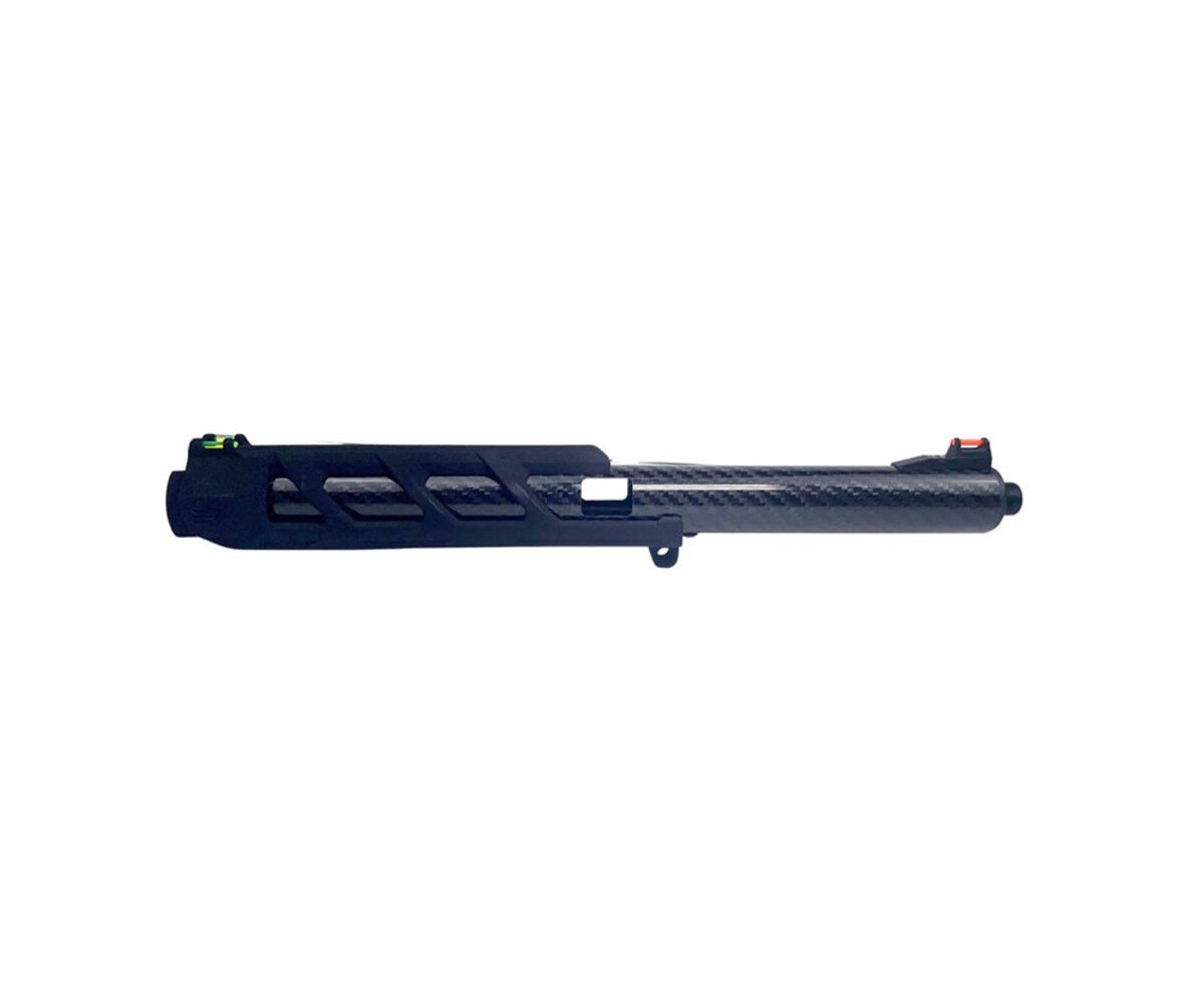 With a mere weight of 105g, the AEG CRBN is a remarkable 500% lighter than a stock SSG-1 Upper, making it a vital component for those who demand speed and agility in tournament play. It's equipped with dual hopup windows for on-the-fly adjustments, making it a breeze to fine-tune your shots for accuracy and range. The integrated fiber-optic back and front sights ensure rapid target acquisition, giving you an edge in fast-paced airsoft battles.
