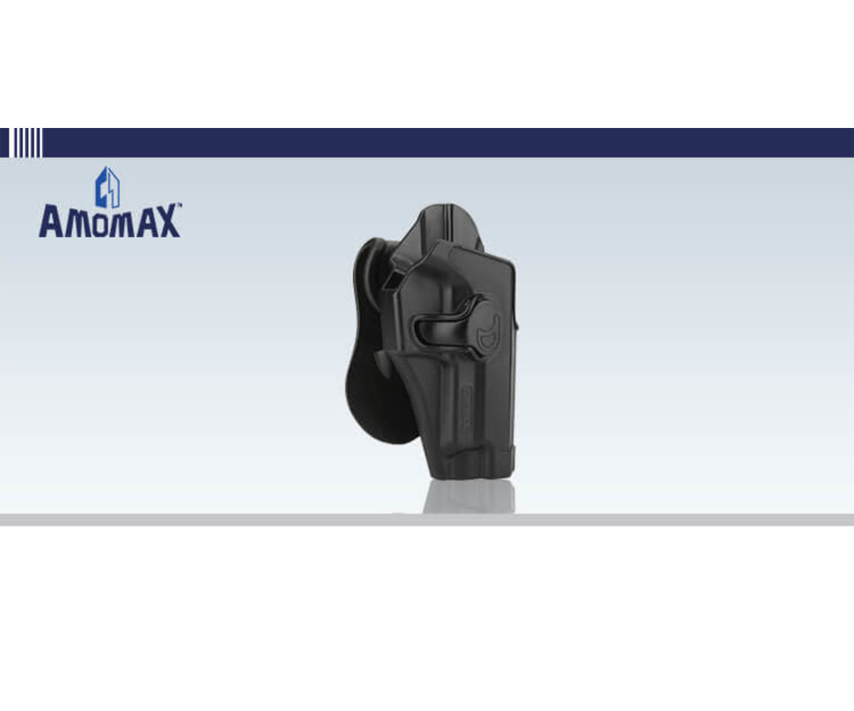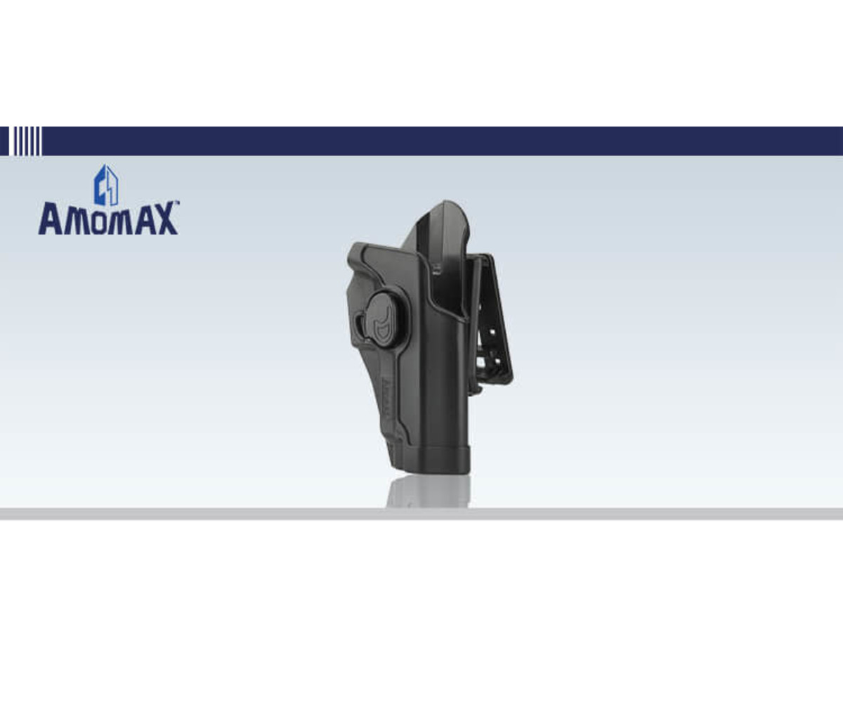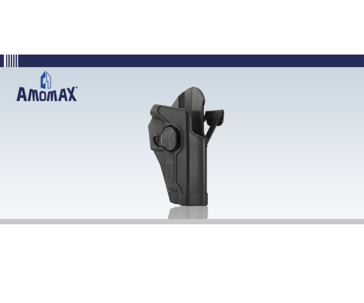 The Amomax hardshell holster offers advanced holster technology for a very affordable price. The slim profile holster secures your firearm to your body while offering fast access in tactical situations. The polymer construction does not add weight or bulk to your overall gear. The finger activated lock ensures retention of your sidearm in the most strenuous of situations yet releases the pistol with a simple press.
