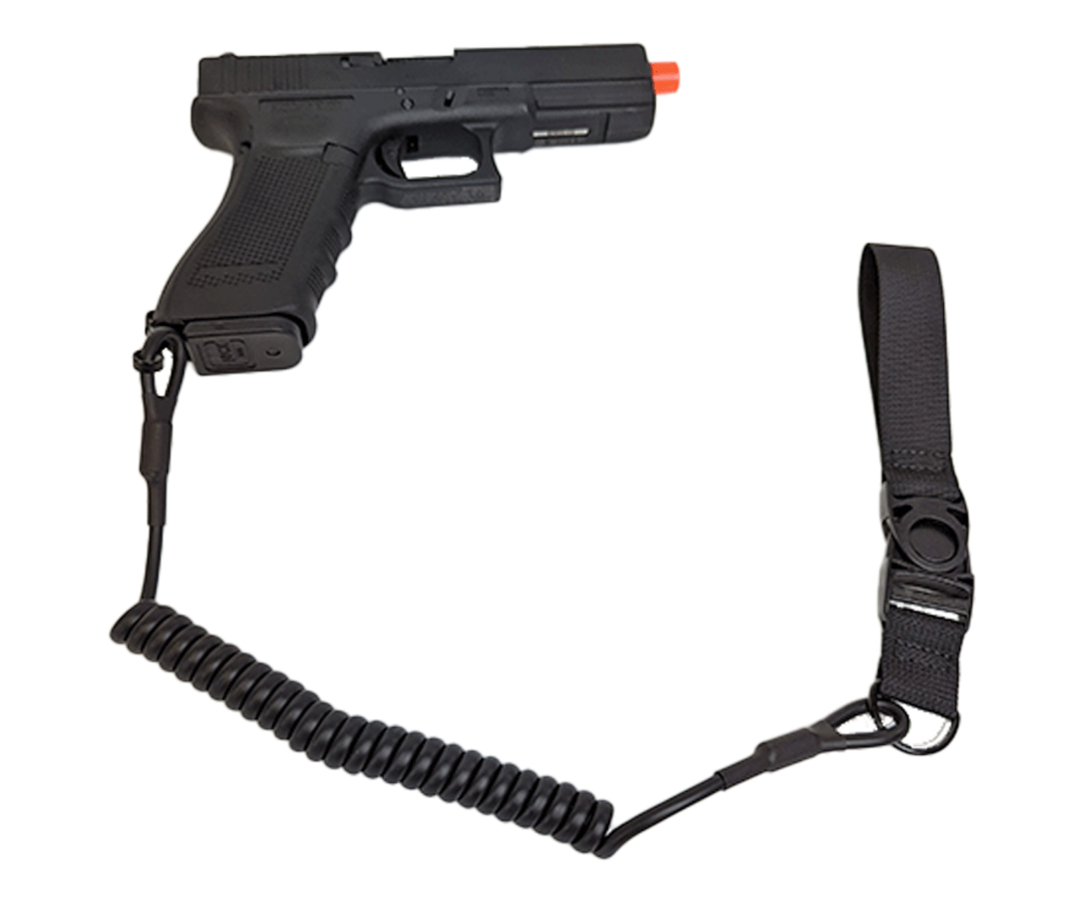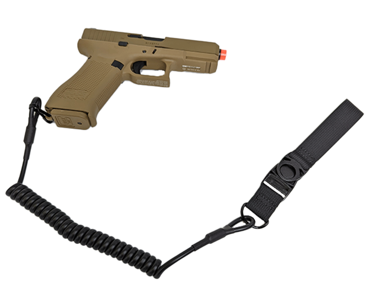 Ensure your sidearm stays close to you, even out of the holster, with the Amomax Pistol Lanyard. This retentive lanyard easily affixes to lanyard loops and lanyard holes on any sidearm. Plus, with a tensile strength of over 245 Newtons, you can be sure that this lanyard is made to last!