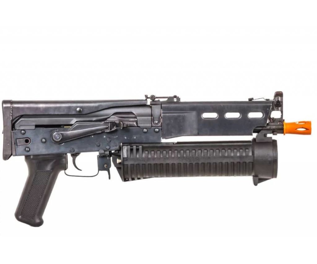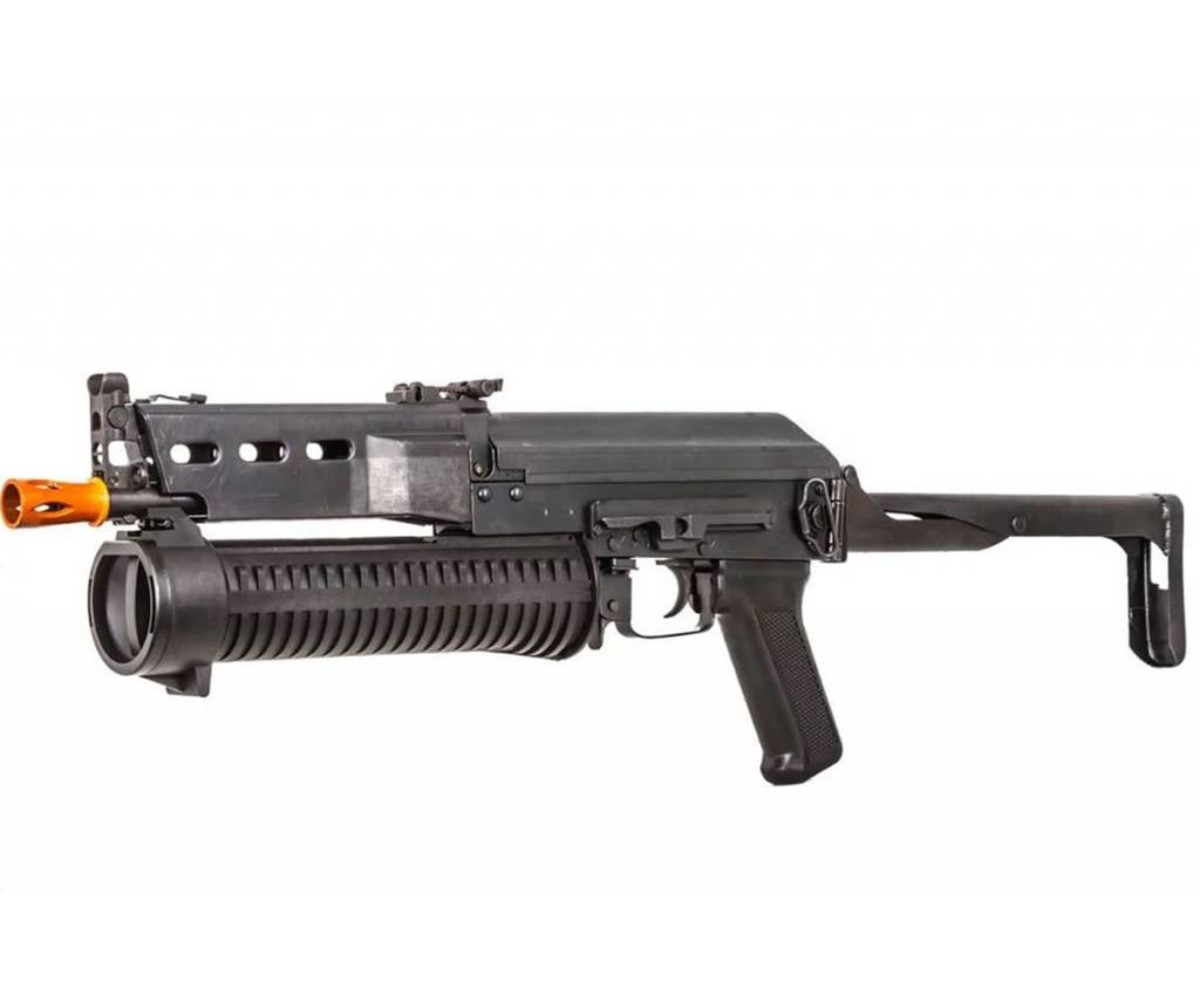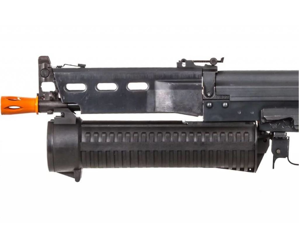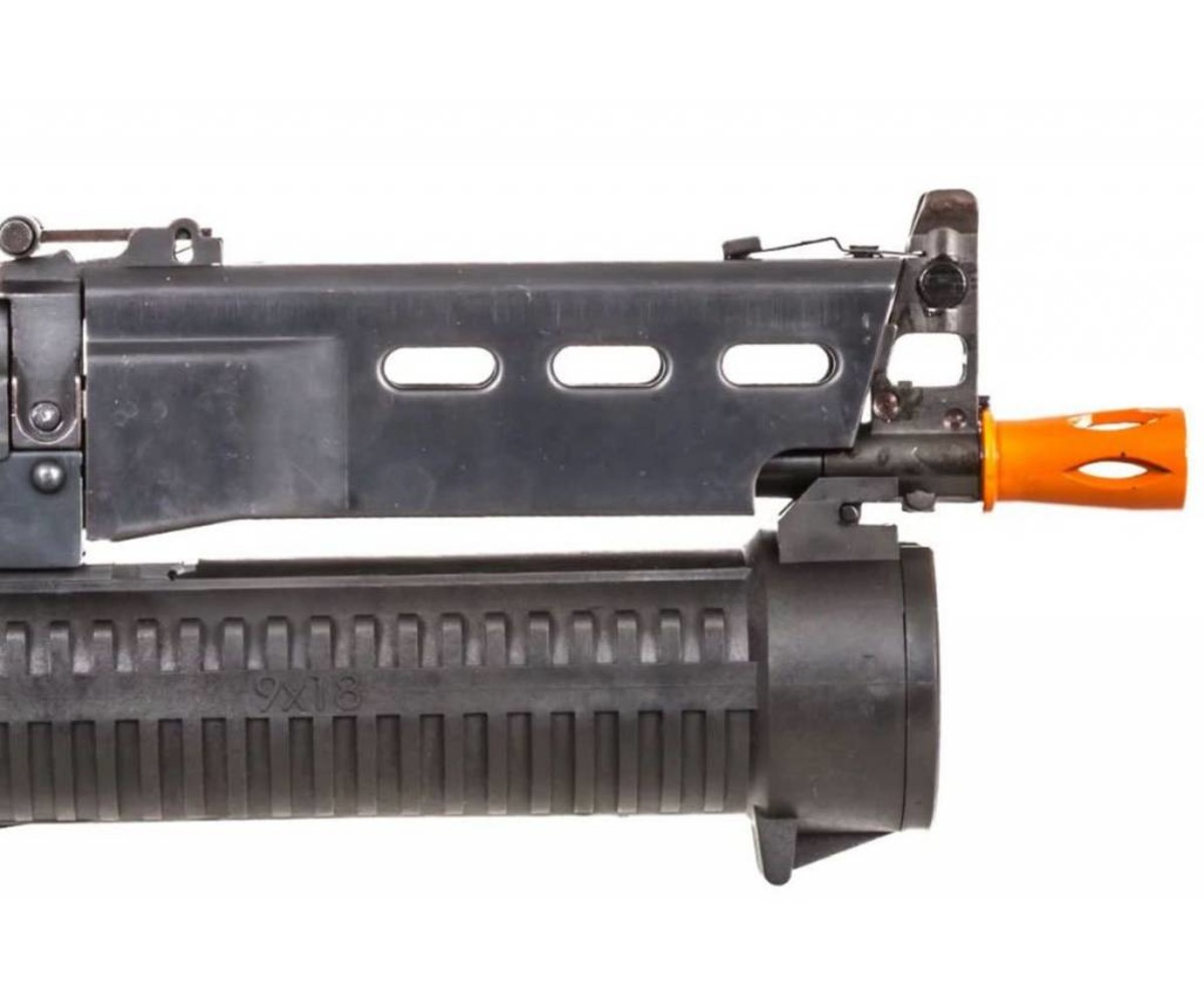 Unique gun for all you Metal Gear Solid 1 fans, except this one features a top folding tube stock that you can't find anywhere else. Heavy steel construction with a plastic pull string 1000 shot drum magazine. These are CLEARANCE products. New in box but we do not guarantee performance, function or finish. You are buying AS IS, so no refunds, exchanges, or warranties. Happy shooting.
