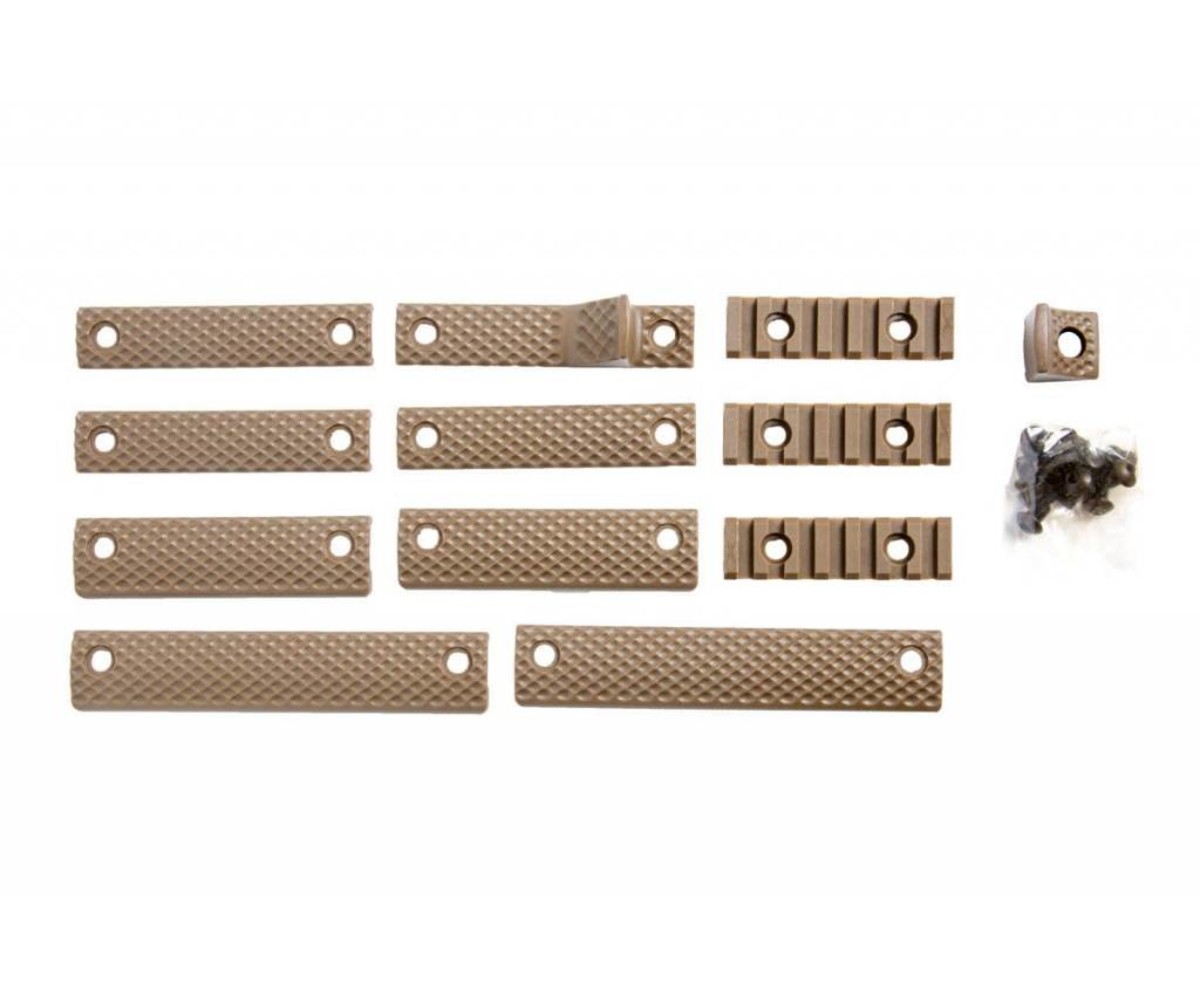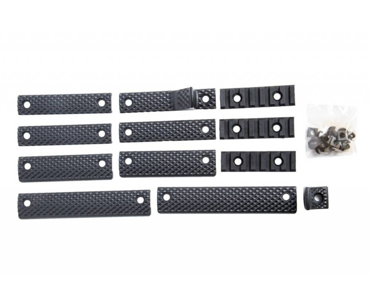 The APEX R5 Handrail kit sports a lightweight polymer construction, adding very little mass to the front end of your rifle. Designed to fit with M-Lok handrails, these covers enhance comfort and provide much-needed traction. The integrated hand stop adds a solid reference point for the shooter, increasing the overall handling and speed. The kit also offers 3 7-slot Picatinny adaptor rails for ultimate customizability!