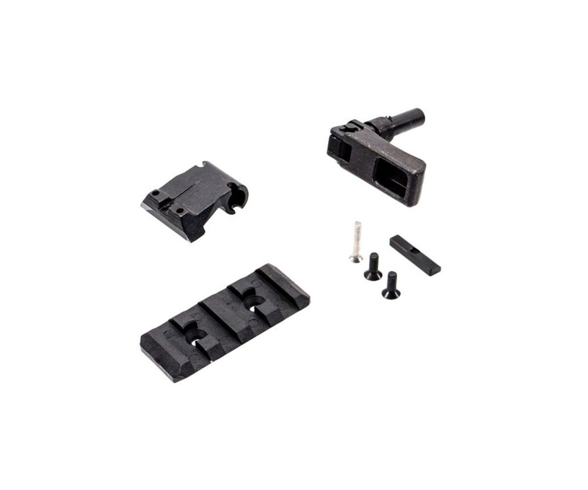 - Steel rear sight with integrated charging handle adaptor