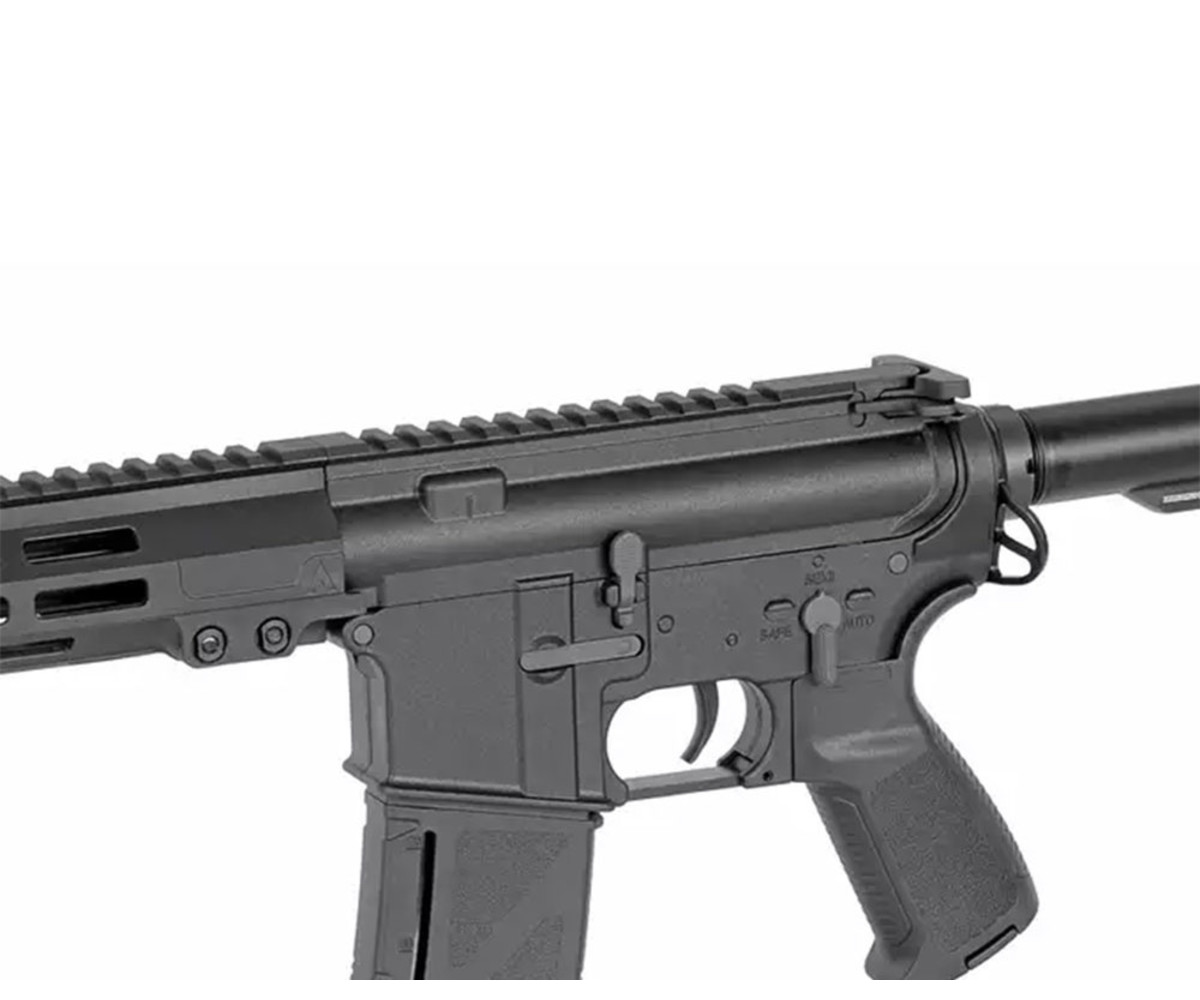 It's a replica of the newest series of Arcturus SPORT with MOSFET, in which a handguard, upper and lower receivers were made of durable nylon. Thanks to the nylon body, the weight of the replica were reduced (overall weight less than 2 kg). Using the nylon, the replica did not lose its strength, because the socket of the receiver extension tube and a barrel socket with a thread for the handguard fastening ring is reinforced with a metal threaded sleeve.