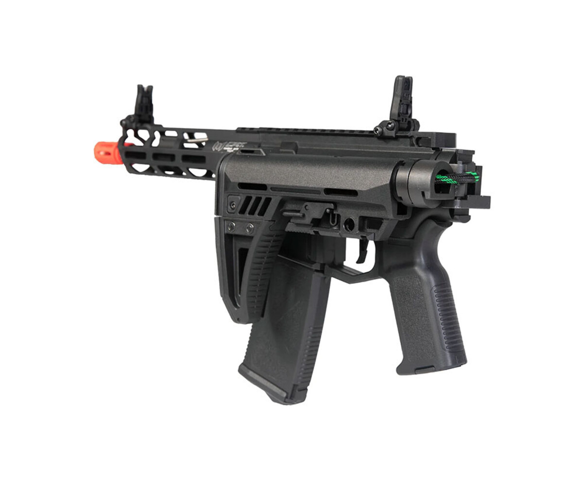 With an 8.5-inch M-LOK aluminum handguard and an aluminum alloy receiver, the Arcturus X CAT is both lightweight and sturdy. The ARCTURUS Collapsible & Multi-Purpose Stock System offers versatility and comfort, allowing players to customize their experience. Complete with a range of accessories including ABUS Folding Back-Up Sights, Magwell Extension, and Pre-Cocking Adjustment Tool, the Arcturus X CAT is ready for action straight out of the box.