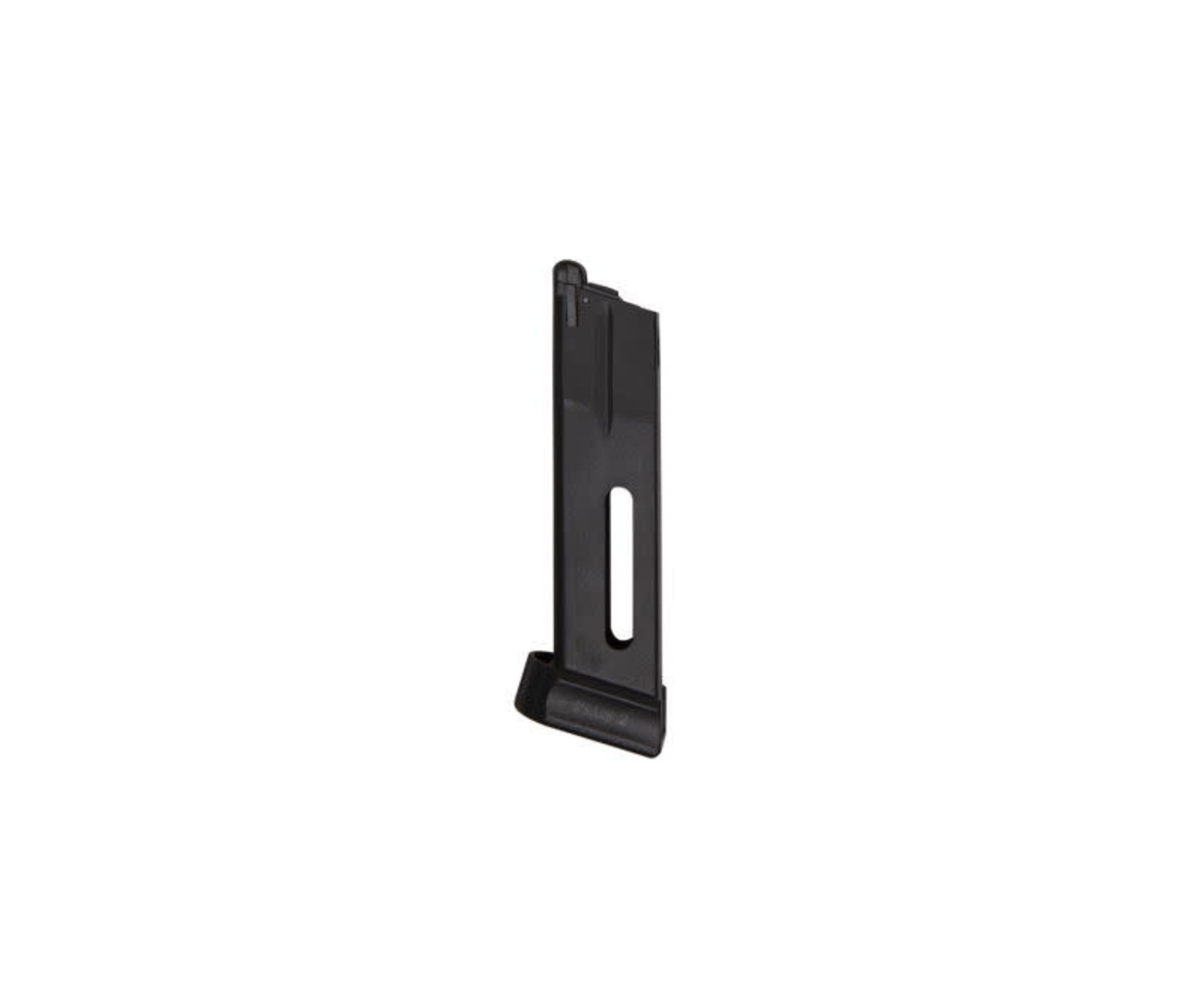 Spare CO2 magazine for the fully licensed B&T USW blowback pistol (item 50239). Holds 26 rounds and is powered by a standard 12-gram CO2 cartridge. The magazine is backward compatible with all our other metal-frame full blowback CZ airsoft pistols (CZ 75, CZ SP-01 Shadow, CZ ACCU Shadow, CZ Shadow 2).