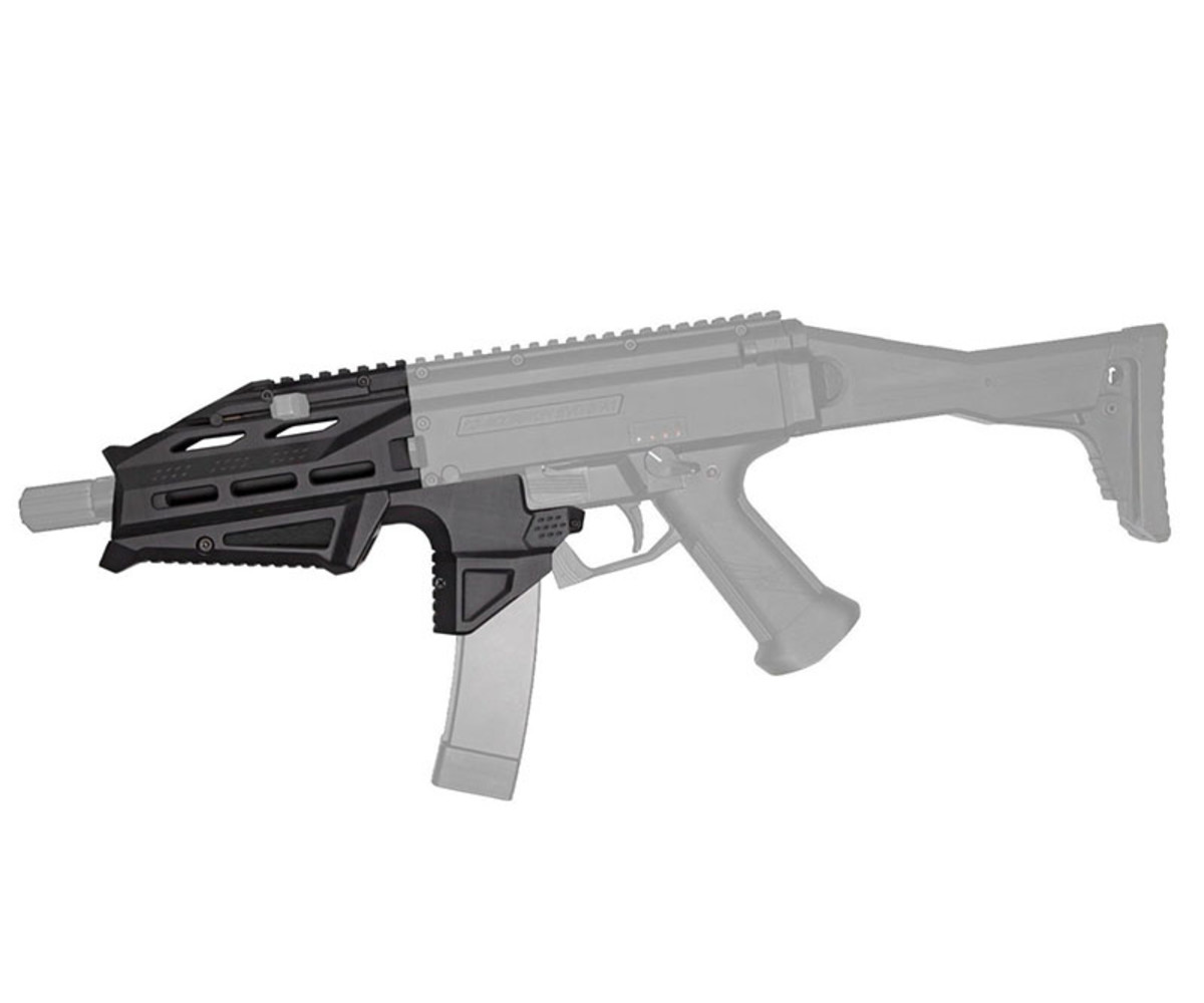The brand new ATEK replaces your handguard of your CZ EVO Scorpion models with a sleek updated M-Lok look with a provided angled foregrip and updated mag well design. The ATEK kit is made out of strong polymer construction that holds up to the weight of rifle accessories. Compatible with CZ EVO midcap magazines only.