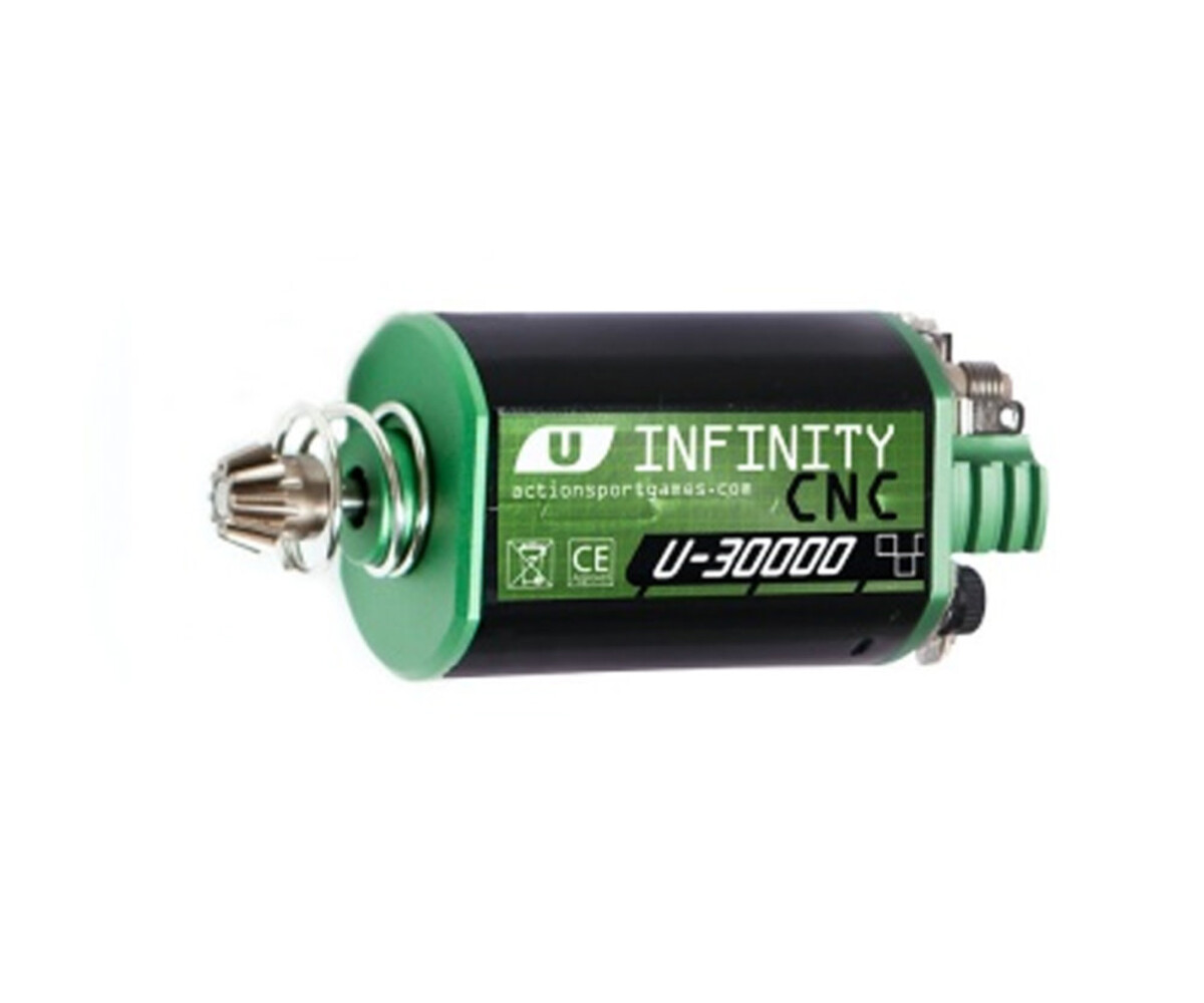 The ASG INFINITY CNC 30k motor has high-quality CNC parts to give the motor greater durability and performance than a stock one in your rifle. The motor output is 30,000 rpm which is strong enough to pull SP110 springs easily without heating up the pistol grip rapidly. This ASG INFINITY CNC 30k motor is an upgrade we highly consider if you want to step up the trigger response and the fire rate of your airsoft rifle.