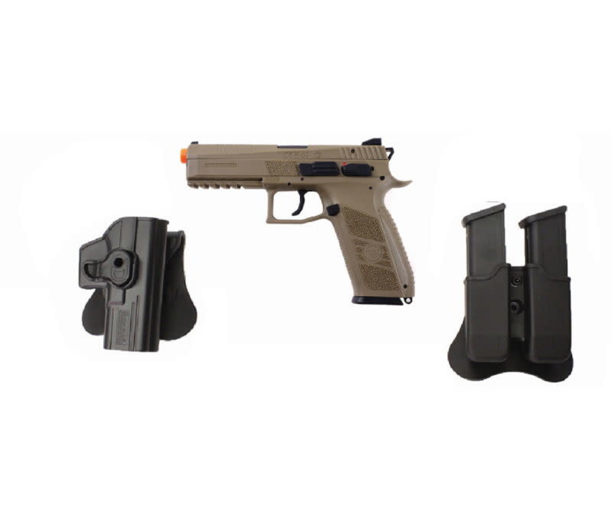 Airsoft Extreme is offering this fantastic pistol in a package at an unbeatable price. You get the pistol, a second green gas magazine, a dark earth locking holster (right handed only), and a matching double magazine pouch for one low price. You will save more than 15% with this P-09 package!