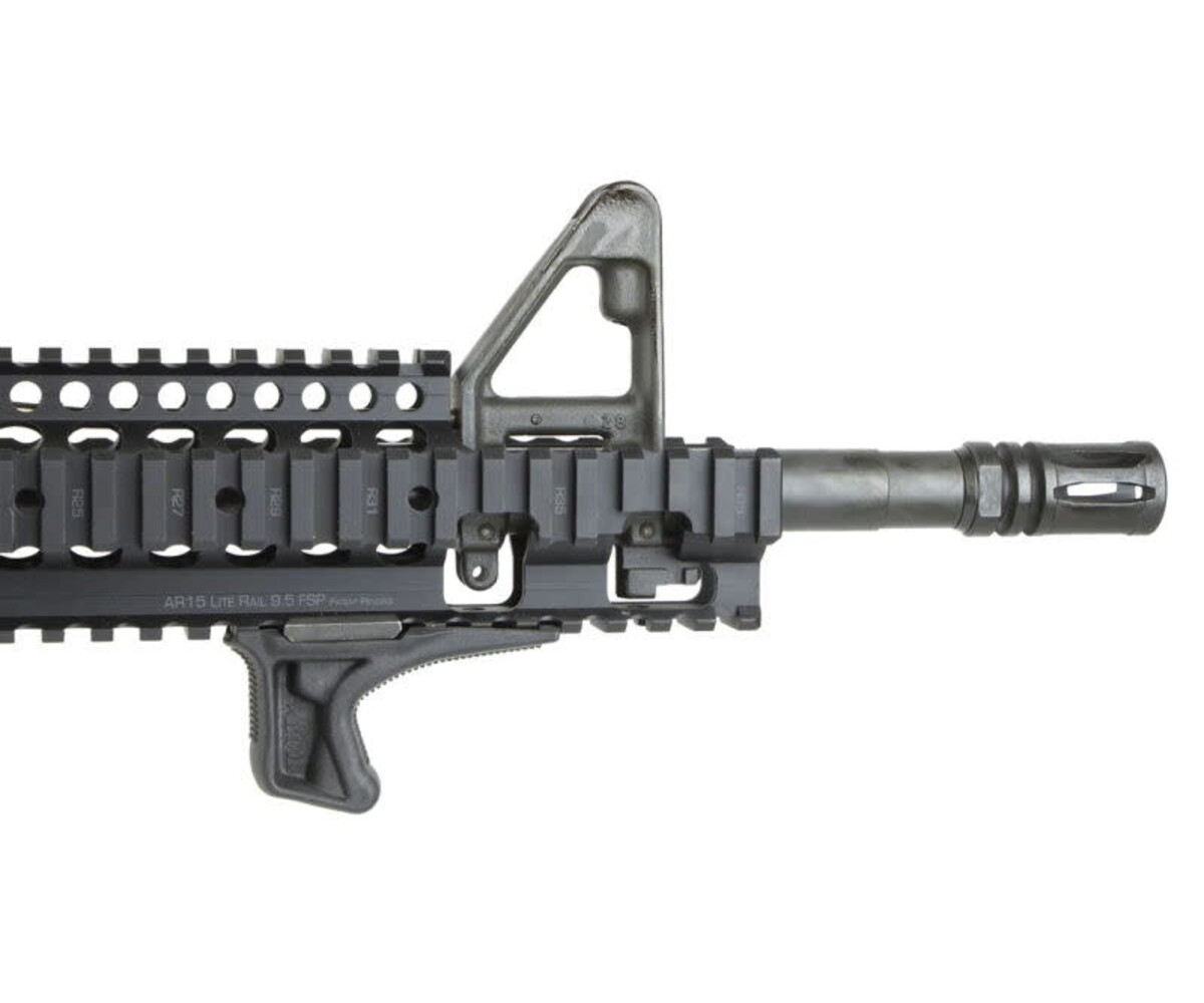 - Slight angle without significant bulk adds just the right amount of relief to the wrist without substantially increasing the girth of the handguard