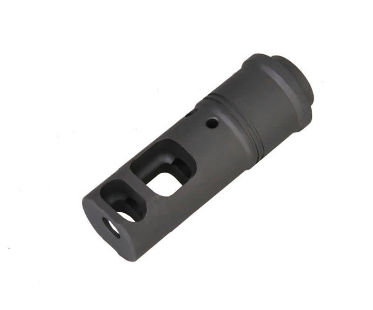 The Big dragon SF style flash hider metal flash hider is designed to fit any standard fourteen-millimeter counterclockwise threaded barrel. The flash hider is made of solid steel giving a hefty realistic feel to the system.
