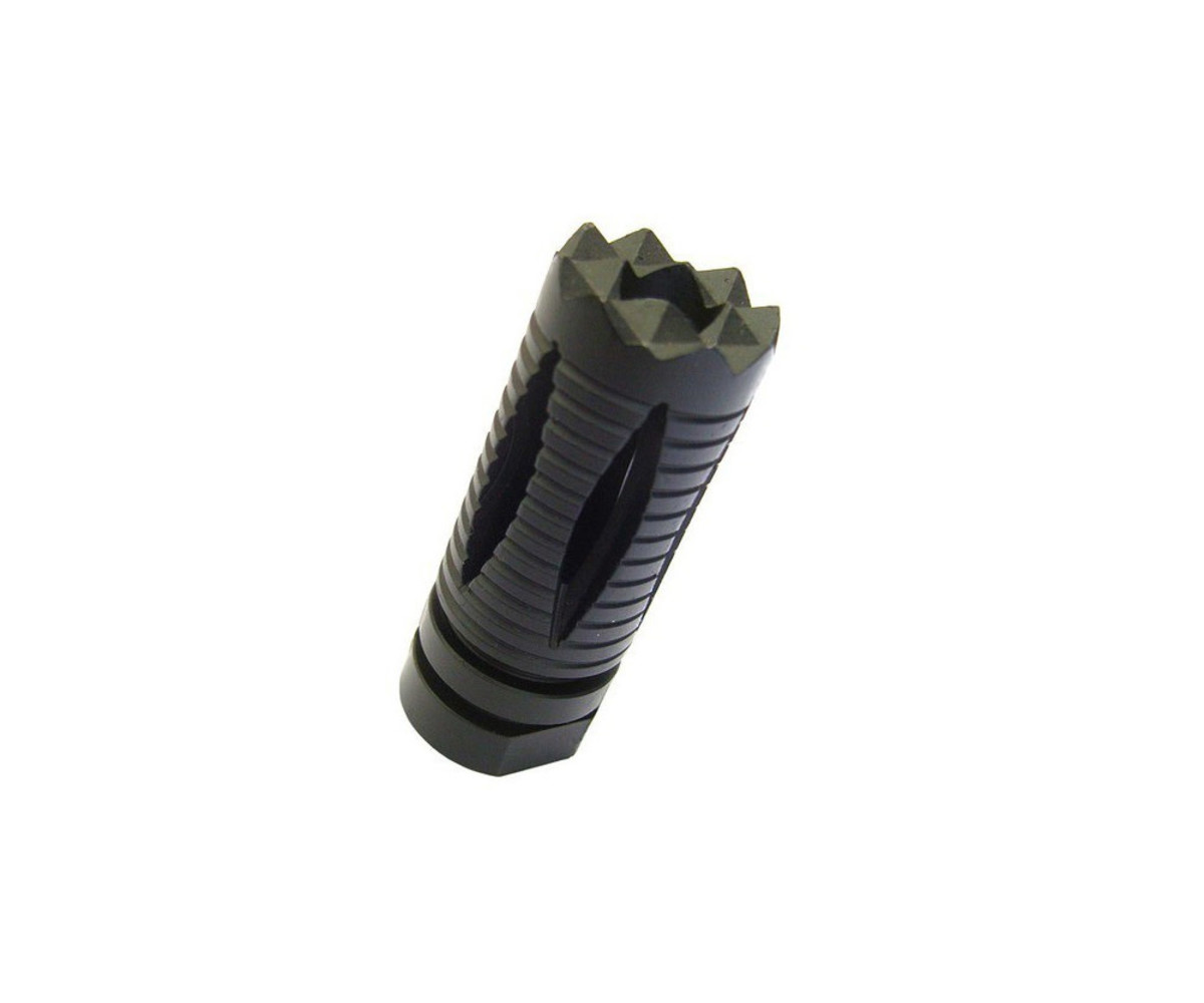Looking for a flash hider with an aggressive look for your airsoft gun? Not content with bare threads? Then check out the Big Dragon Troy Style Flash Hider. This full metal flash hider easily attaches to any 14mm CCW threading on your outer barrel. This flash hider offers a blend of a classic M4/M16 flash hider mixed with an aggressive, spiky front end.