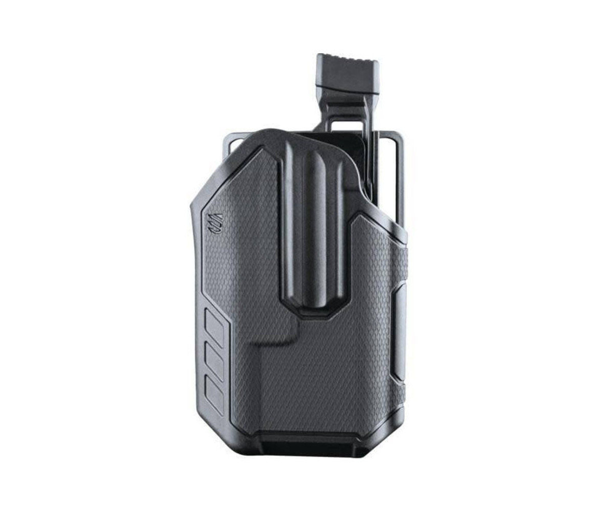 - Multi-fit Omnivore Holsters fit more than 150 styles of semi-automatic handguns with an accessory rail;Specifications=Ergonomic thumb-activated retention mechanism delivers instant firearm access"