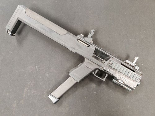 For reference, Lawrence was running an older KWA NS2 G-series gas blowback pistol in a Hera Arms-style chassis. (See Pic 1 & Pic 2)