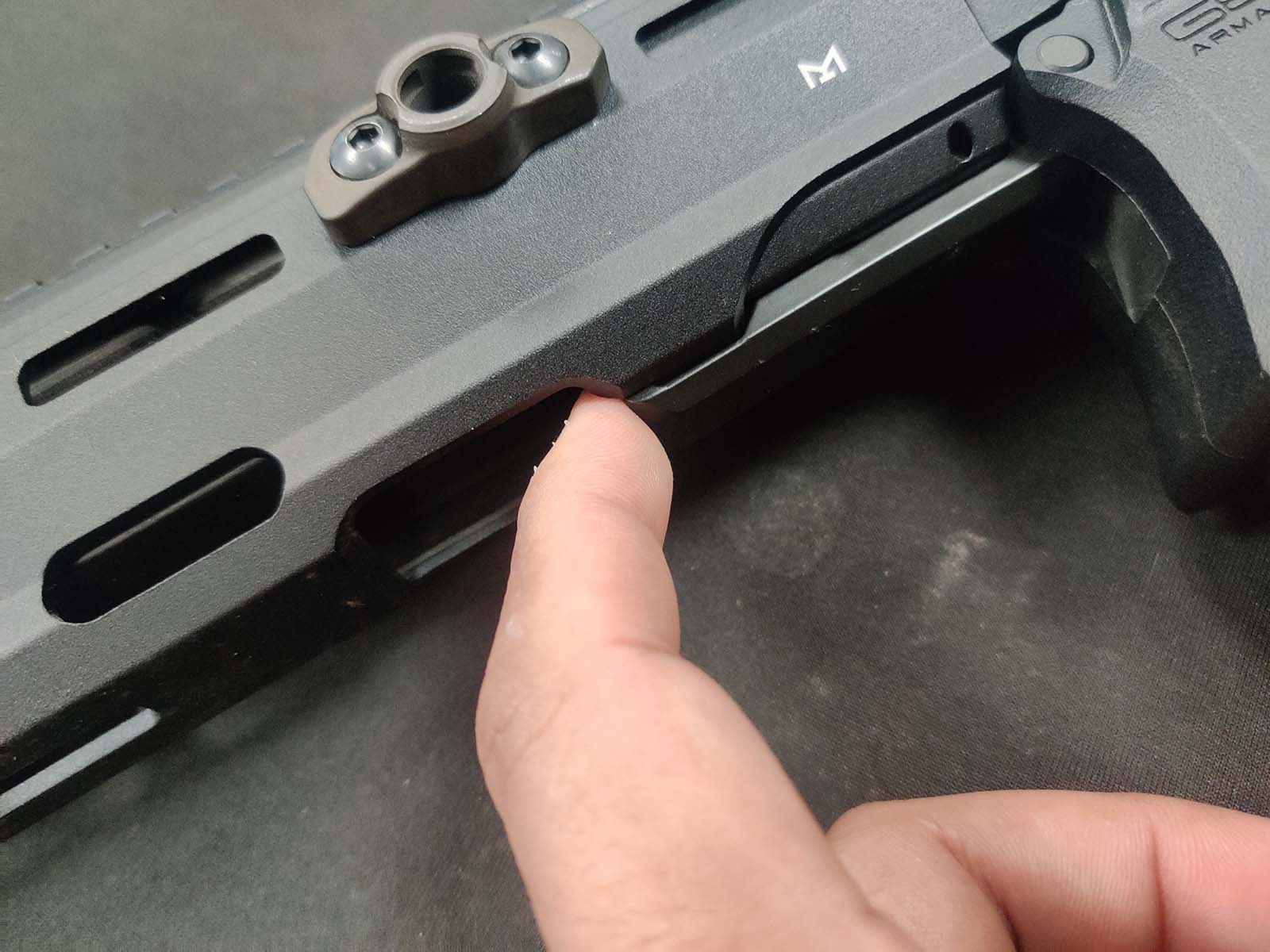 Start by locating the release lever on the bottom of the handguard. (See Picture 3)