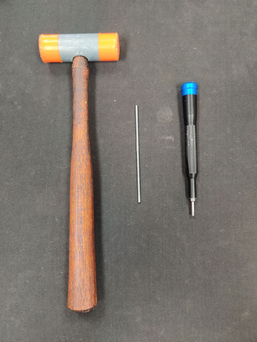 Using your small punch and mallet, remove the hammer housing pin. Important: This pin must be driven out from left to right. The right side of the pin is shaped to only come out in one direction. (See Picture 4 & Picture 5)