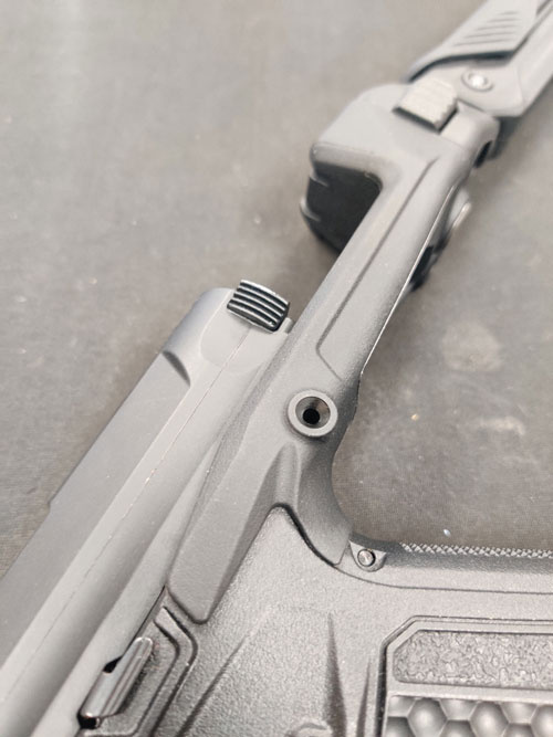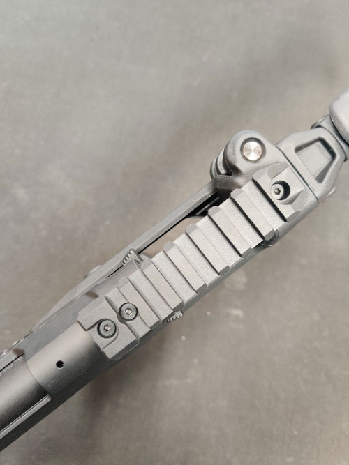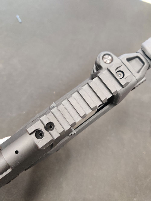 Finally, reinstall the top rail onto the upper receiver of your AAP-01. Use the two original screws from the rear sight along with the screw from the stock to secure everything in place. (See Picture 15 & Picture 16)