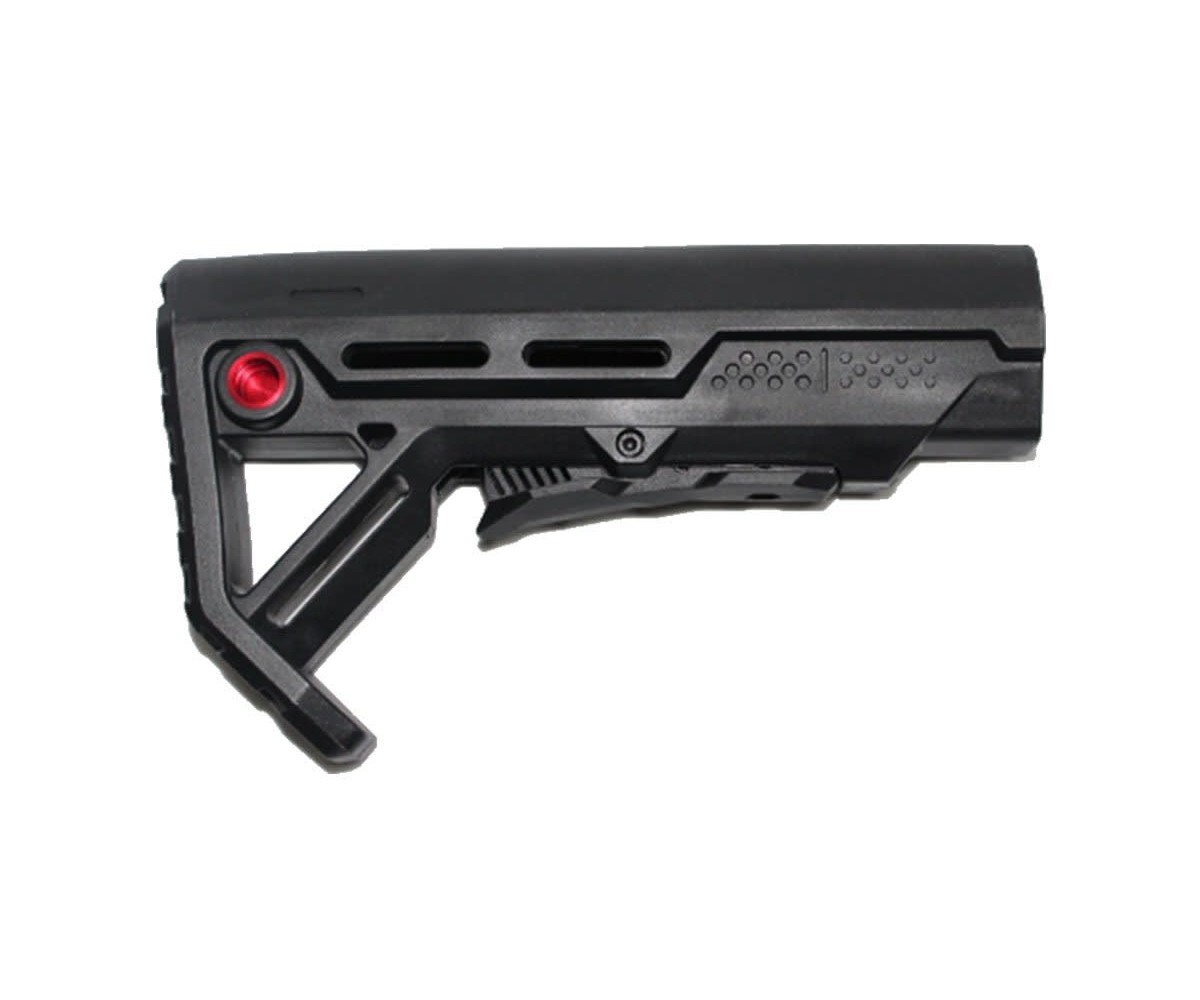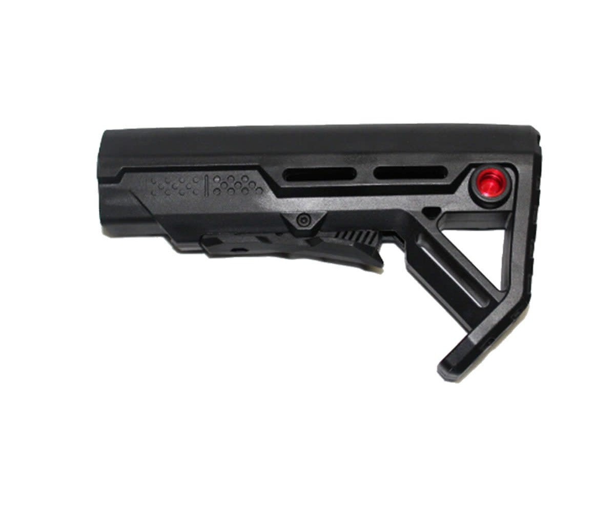 Looking for a sleek, new stock for your M4 style primary? Need a stock with a slim profile and compact size? Try out the Castellan Striker Stock Black. This stylish black stock fits on most M4 style buffer tubes, and offers a streamlined and slim fit. Plus, the eye catching red accents add a little extra style to this already stylish stock.