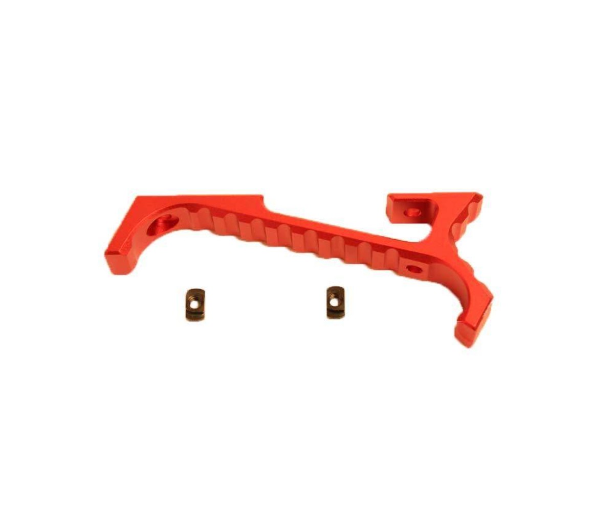 The angled grip gets your hand closer to the rail of the rifle. This allows for an improved shooting form by being able to naturally drive the rifle into your shoulder. Locking your hand in also allows for consistent shouldering, and enhanced lateral movement. Letting you increase your speed without suffering accuracy!