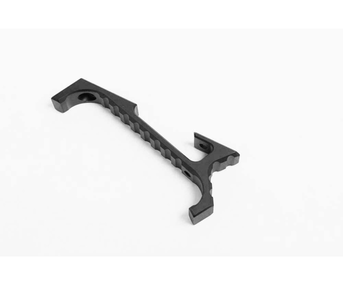The Castellan Hybrid grip acts as both an angled grip, and a hand stop. Angled grips reduce the stress on your wrist and allow for the most natural hand placement on the rifle. In combination with a design to lock in your hand, many riflemen prefer this style of grip over the vertical.